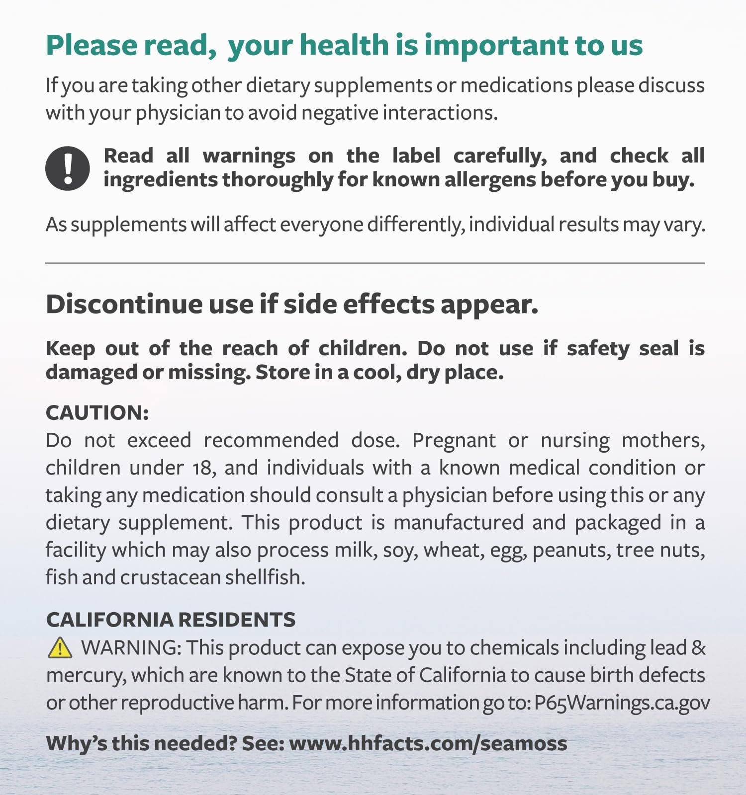 - Pure Quality, No Fillers: We prioritize your health. Our Sea Moss formula is free from fillers like magnesium stearate, silicone dioxide, and rice flour. Just a pure blend of fresh Sea Moss powder in a convenient capsule