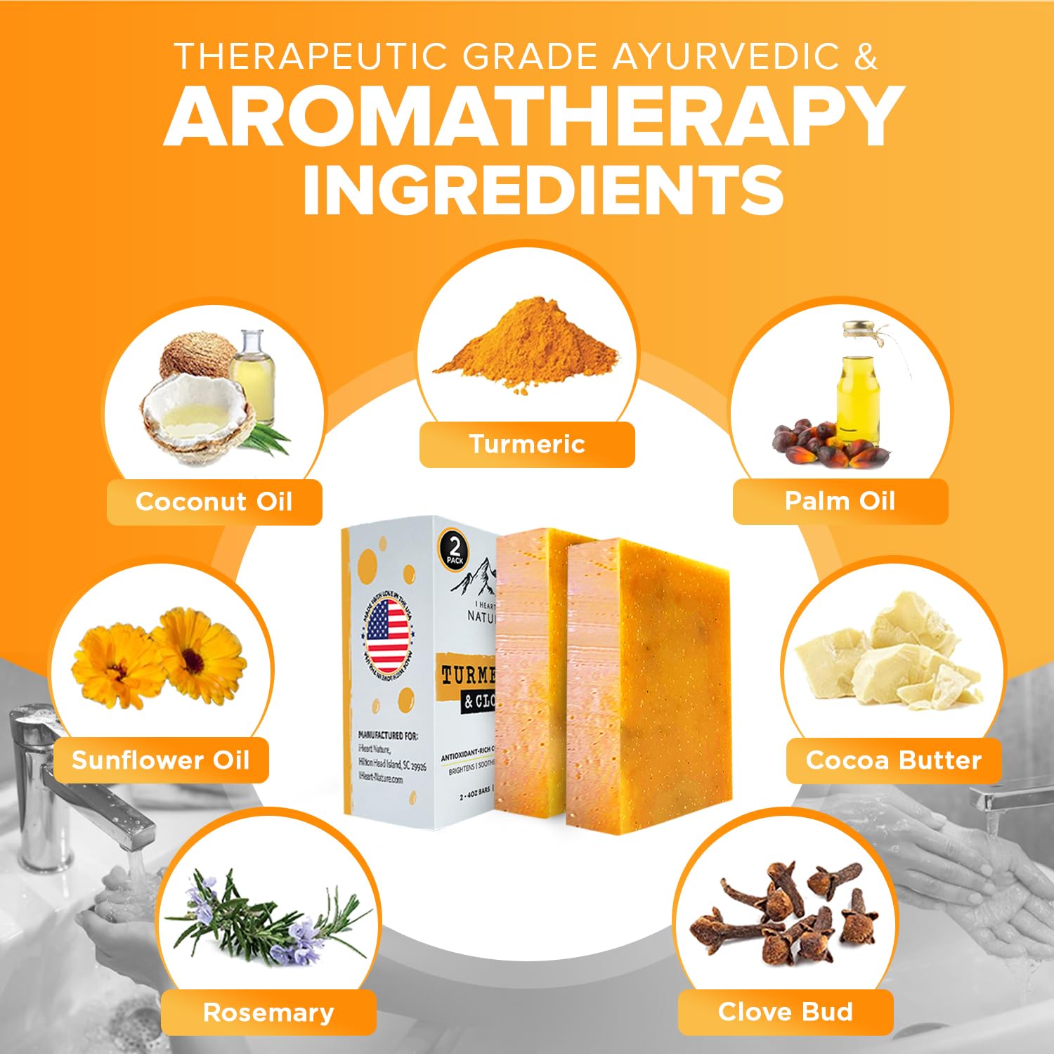 - Great Formula and All-Natural Scent: Discover our holistic turmeric body soap that promotes clear skin. No synthetic fragrances - just an earthy, spicy iHeart Nature soap bar, enriched with a custom essential oil blend.