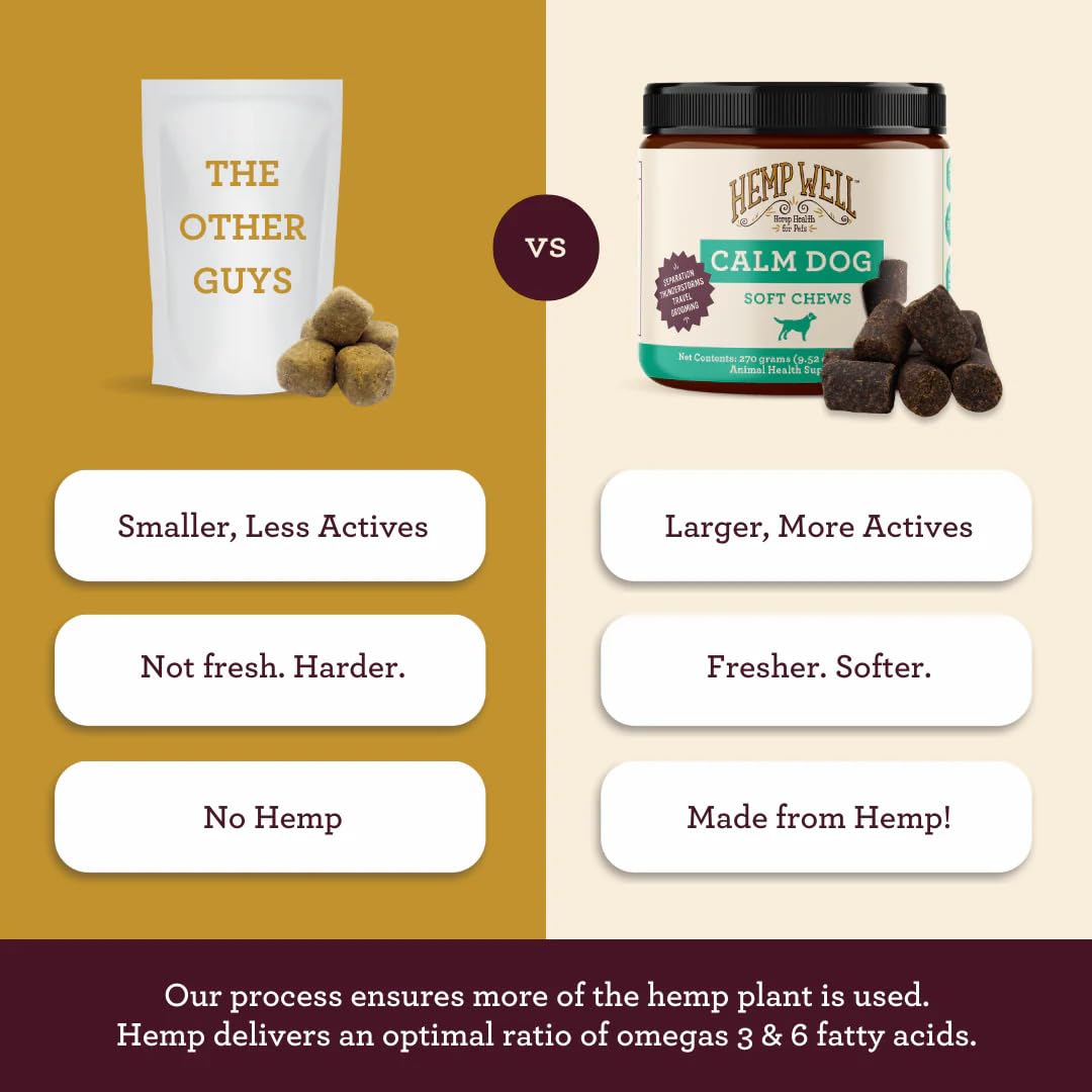 Organically Sourced Hemp Well Calm Dog Soft Chews - Anxiety Relief Treats for Dogs, Helps with Separation Anxiety and Travel, Melatonin and Hemp Dog Calming Chews (1 Pack (30 Chews))