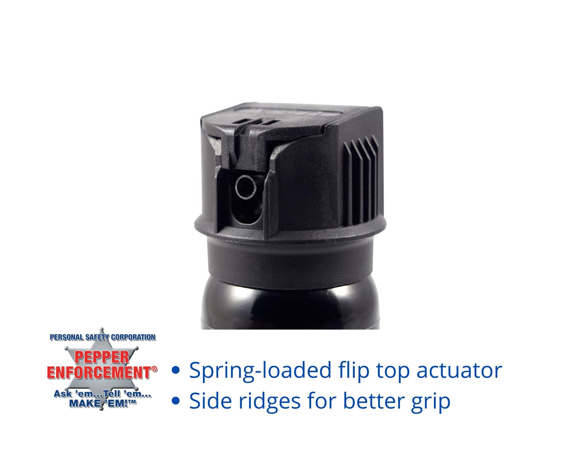 - Max Strength Police Grade Pepper Spray: Don't leave your personal safety to chance! Pepper Enforcement maximum strength pepper spray is an effective non-lethal self-defense weapon. Our potent police strength formula contains 10% OC, 2 million SHUS, and 1.33% Capsaicinoids, allowing you to take down any attacker instantly. Protect yourself and your loved ones with Pepper Enforcement. Trust us, when it comes to your safety, there's simply no room for compromise.