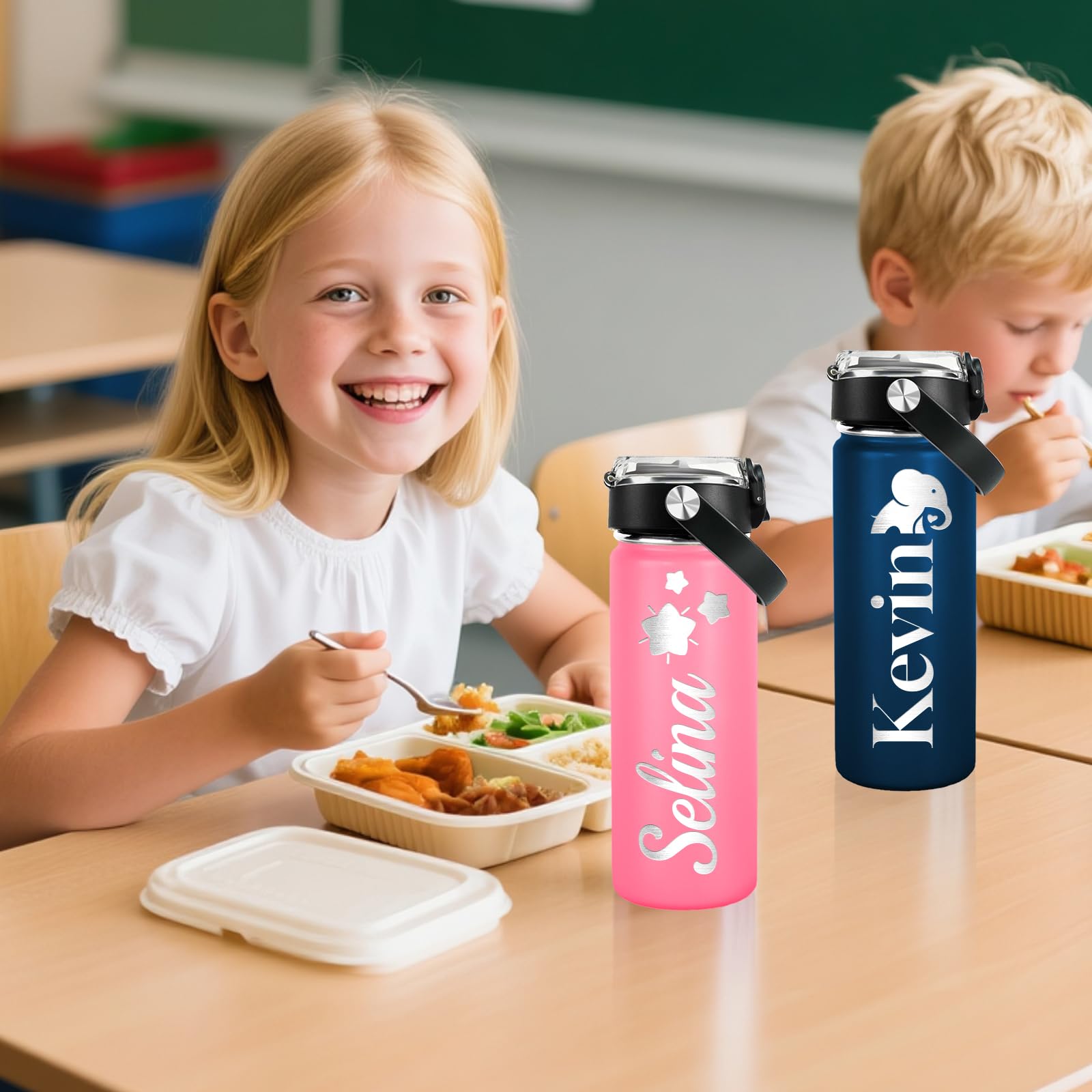 Personalized Kids Water Bottle with Name for School - Custom 18oz Water Bottle with Straw Lid Stainless Steel w/Engraved Names - Personalized Back to School Gifts for Boys Girls kids (Engraved)