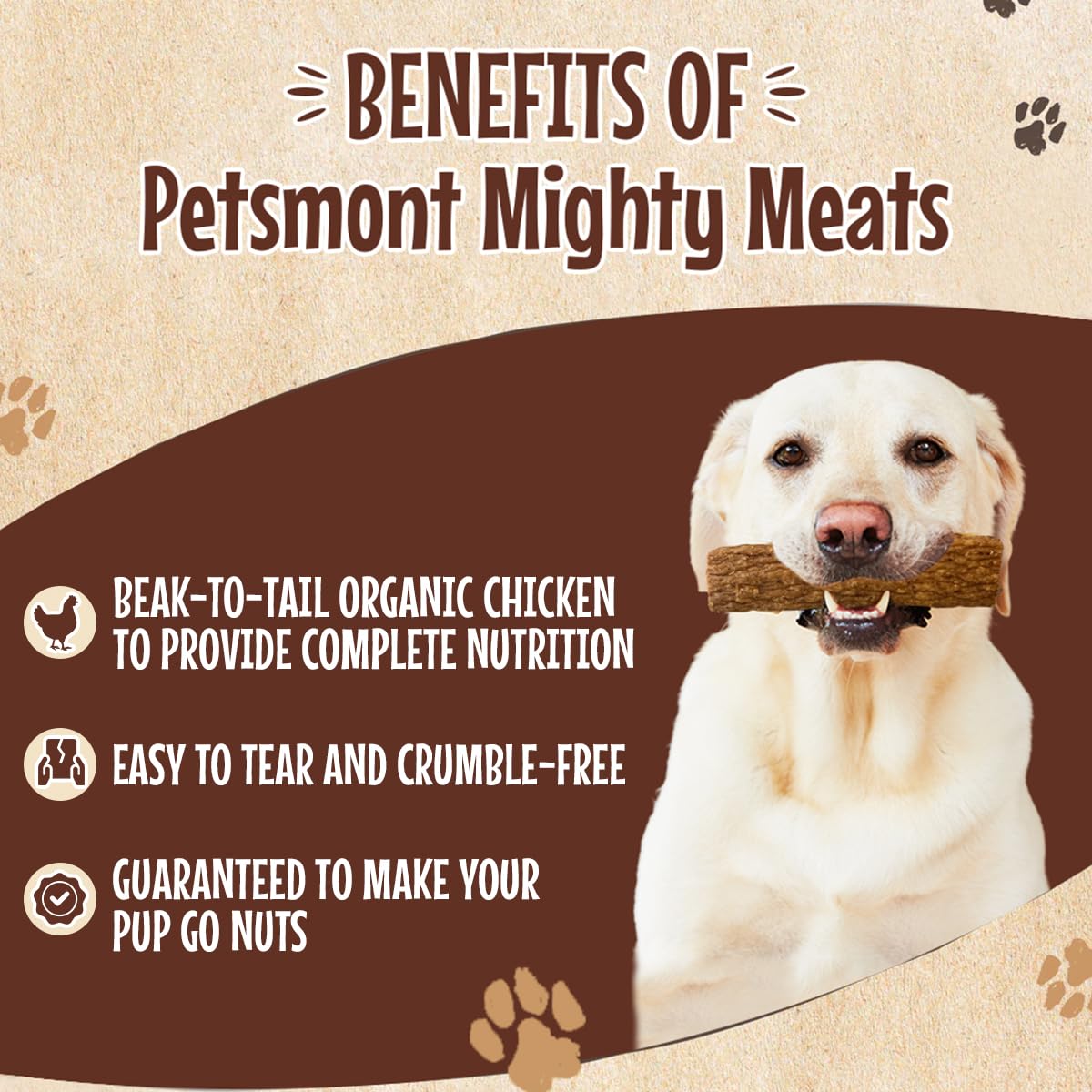 Petsmont Meat Munchies - Organic Chicken Jerky Dog Treats Limited Ingredient All Natural, Preservative Free, No Filler Chicken Treat for Dogs High Protein 2 Ingredient Dog Snacks Made in the USA - 5oz