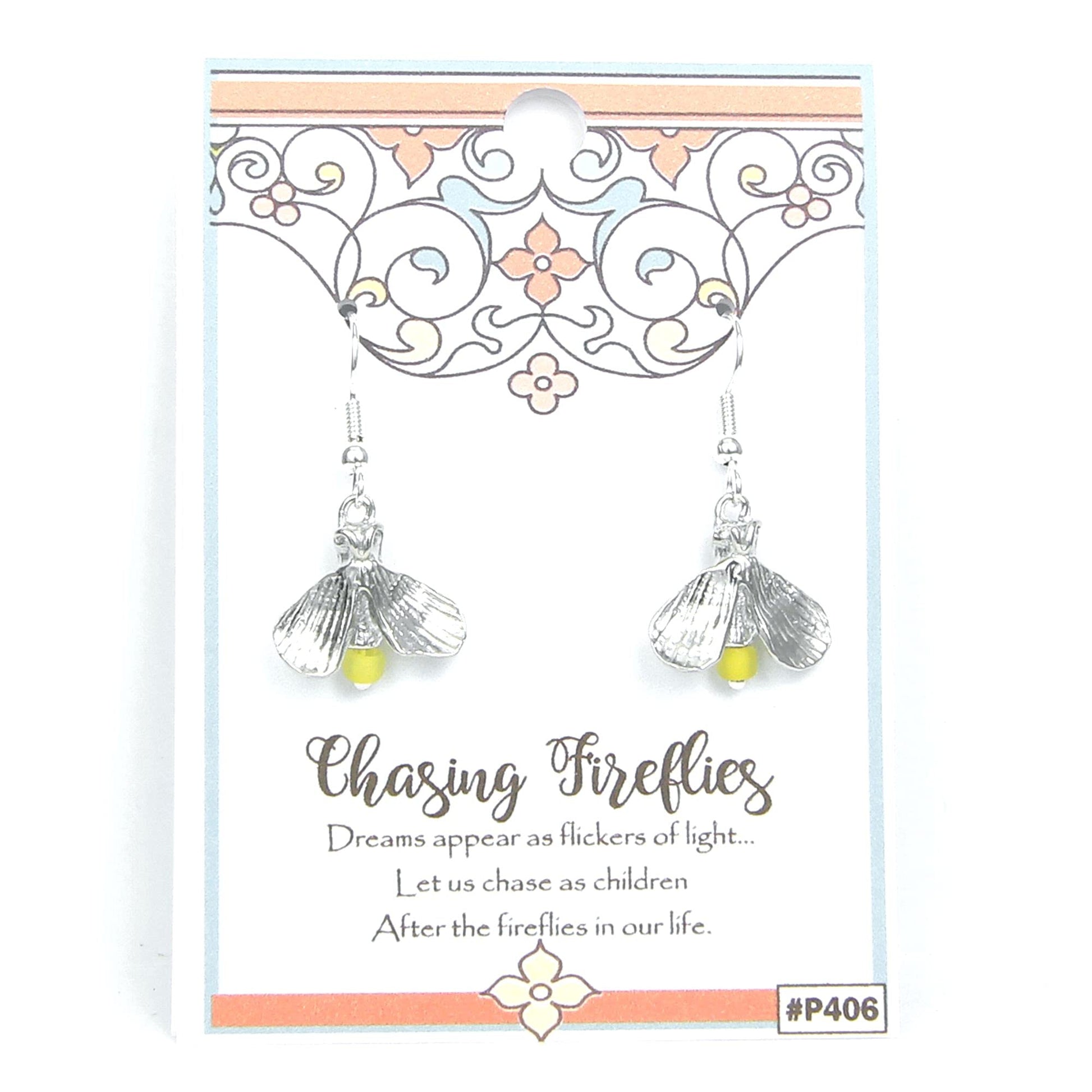 Pewter Firefly Lightning Bug Earrings - Gift Packaged with Chase your Dreams Story Card - Graduation, Wedding, and Shower Gift- Made in USA