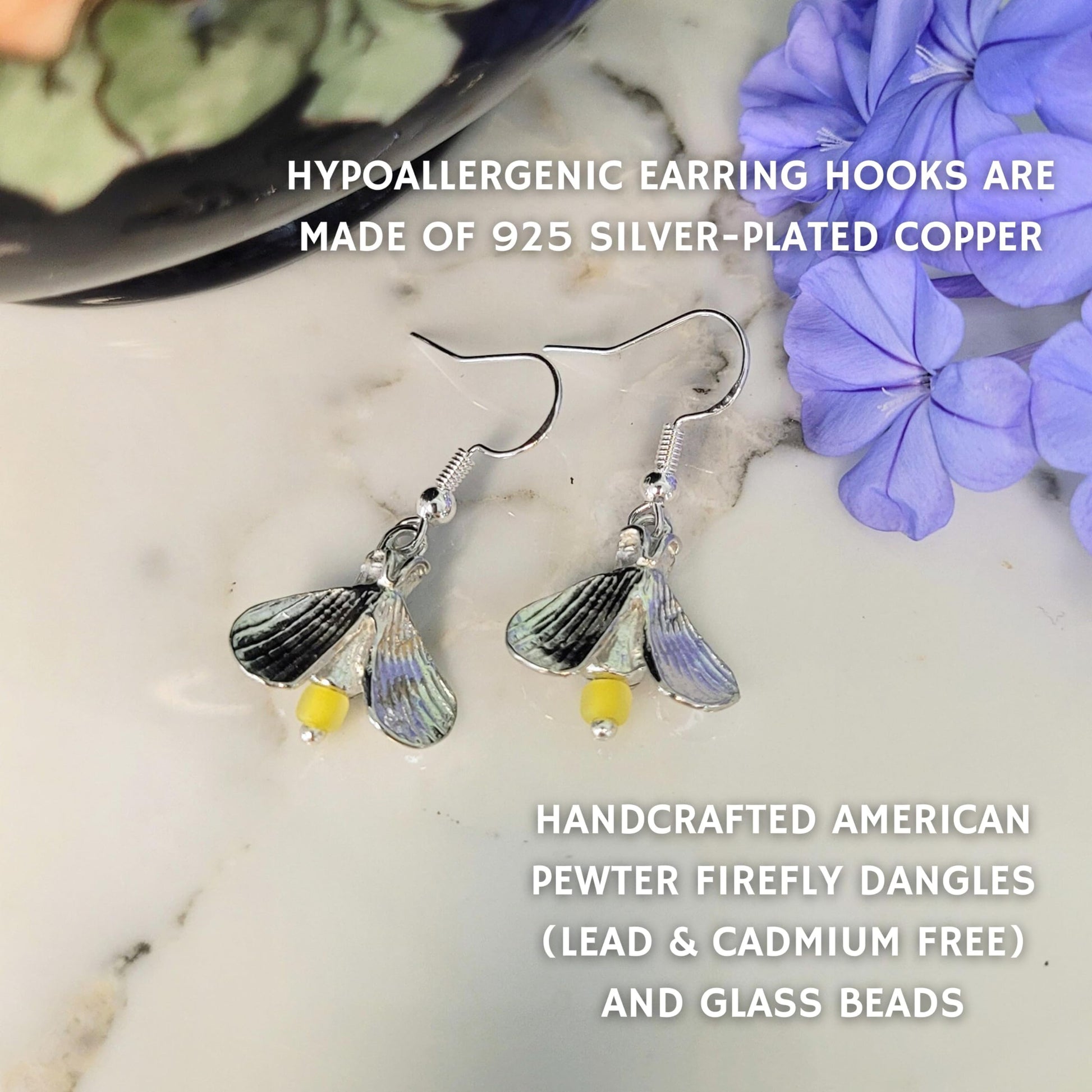 - [ American Pewter ]:Handcrafted Pewter Firefly charms dangle from hypoallergenic ear wires made of 925 silver plated copper; Firefly charm is American Pewter - Lead and Cadmium free. - Made in Florida, USA