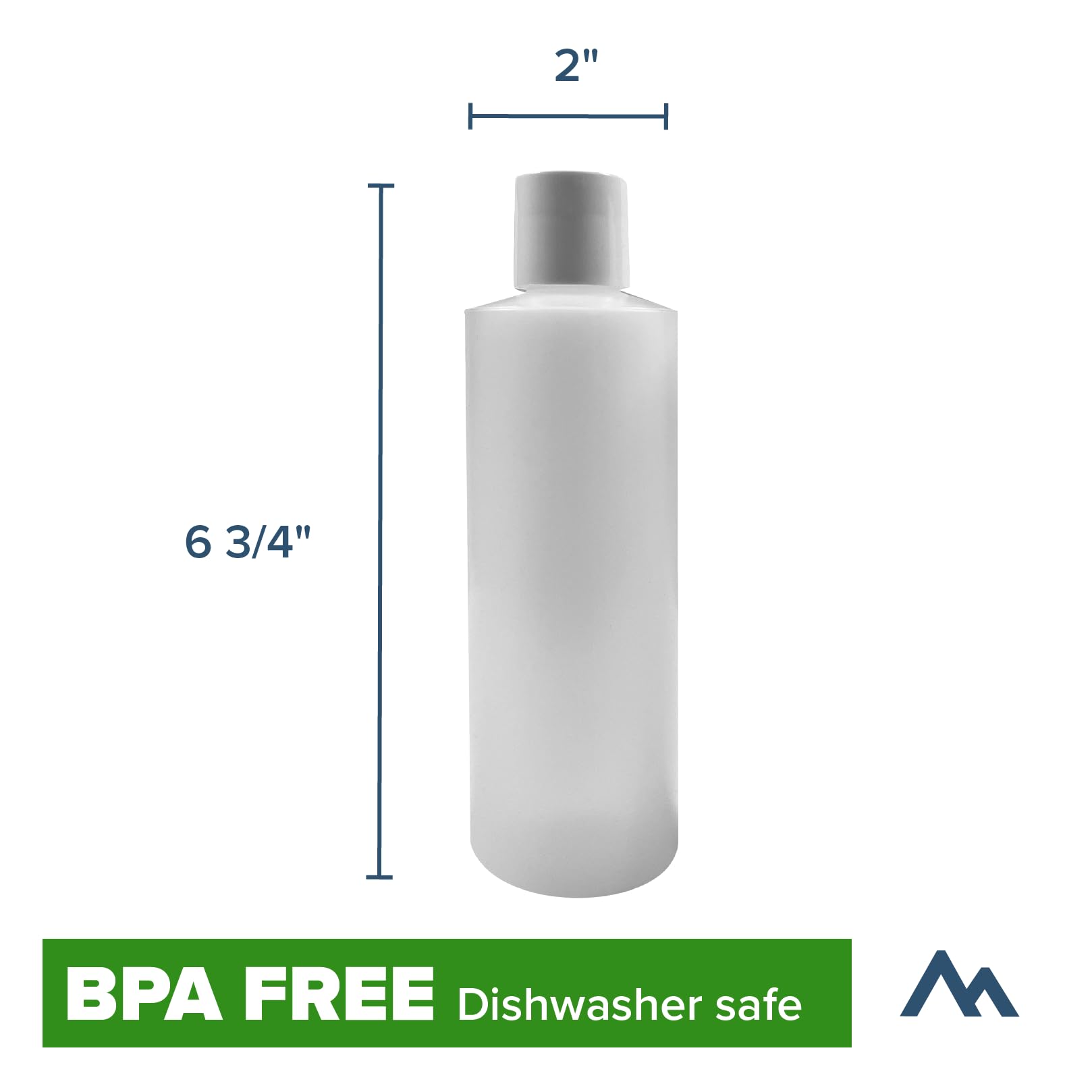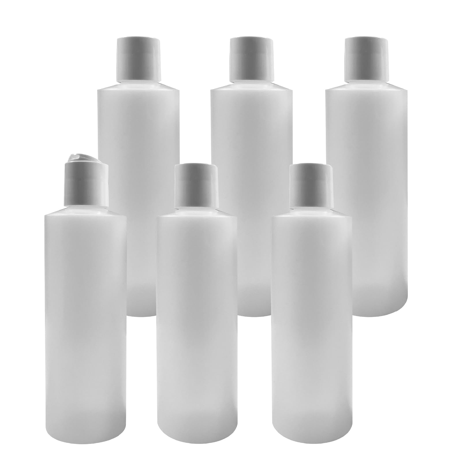 - PACK OF 6- 8 Ounce BPA Free HDPE translucent empty squeeze bottles with 6 White Disc Caps