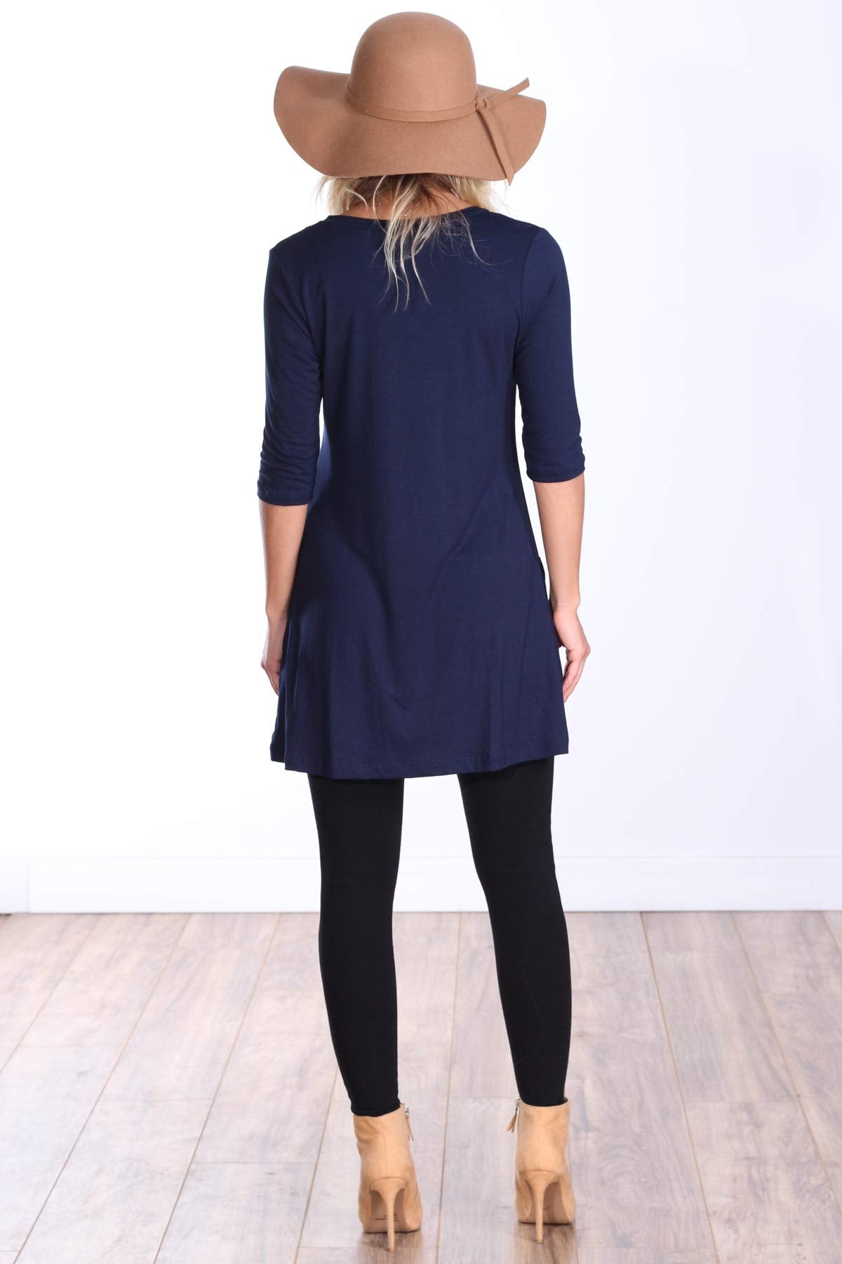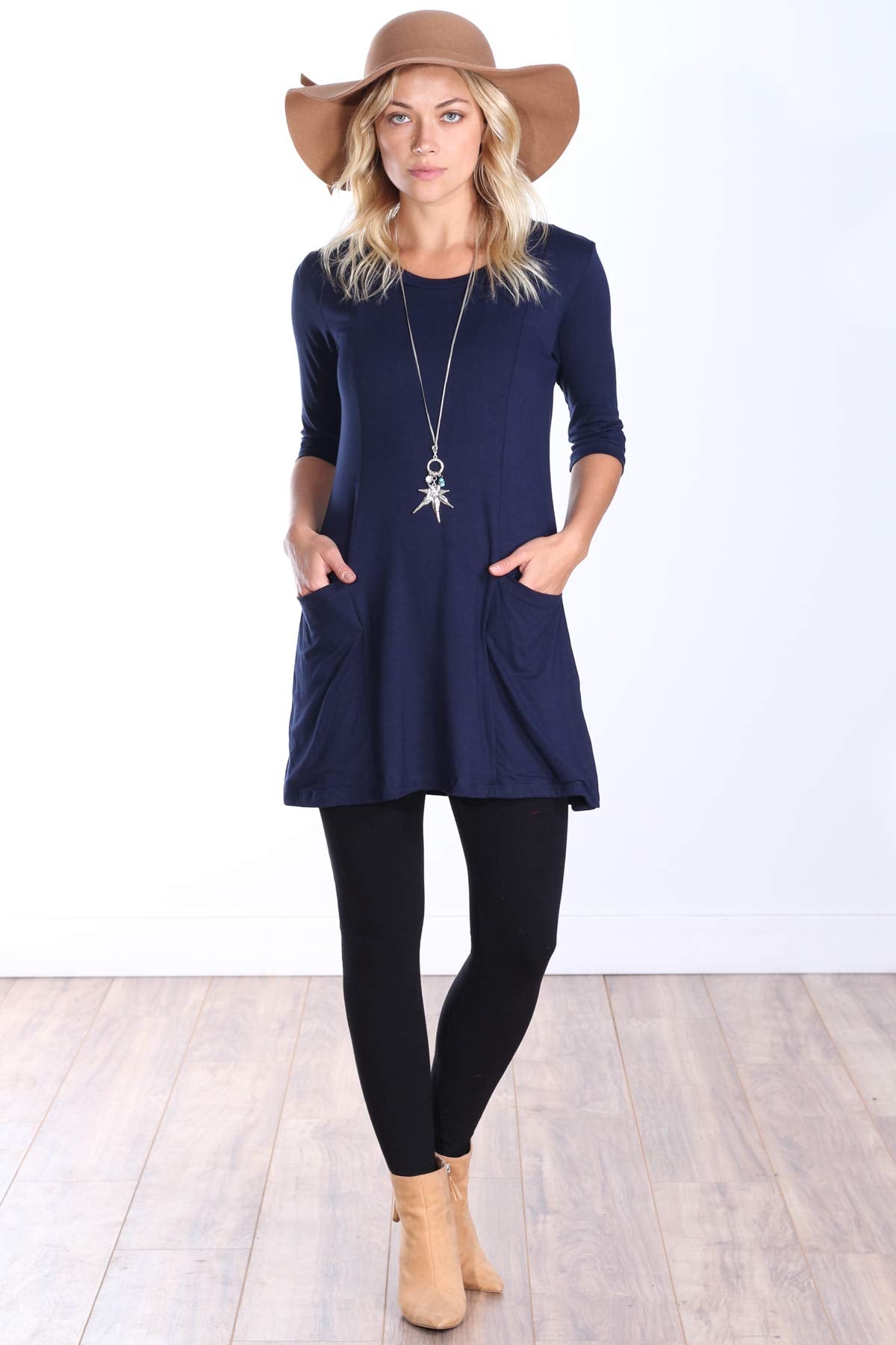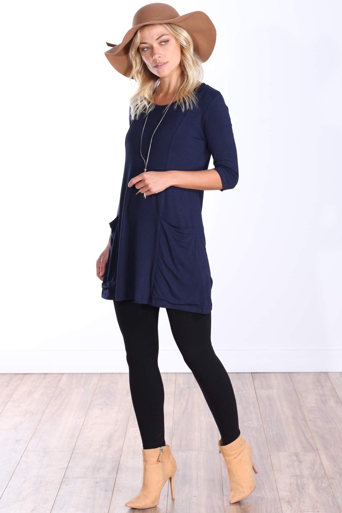 Popana Womens 3/4 Sleeve Tunic Top with Pockets for Leggings Made in USA Navy