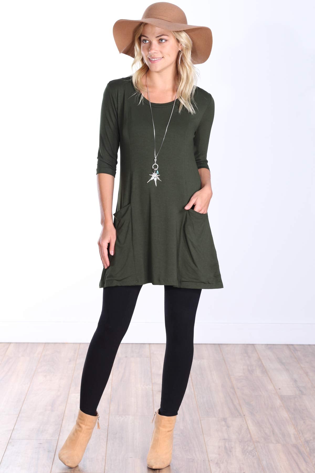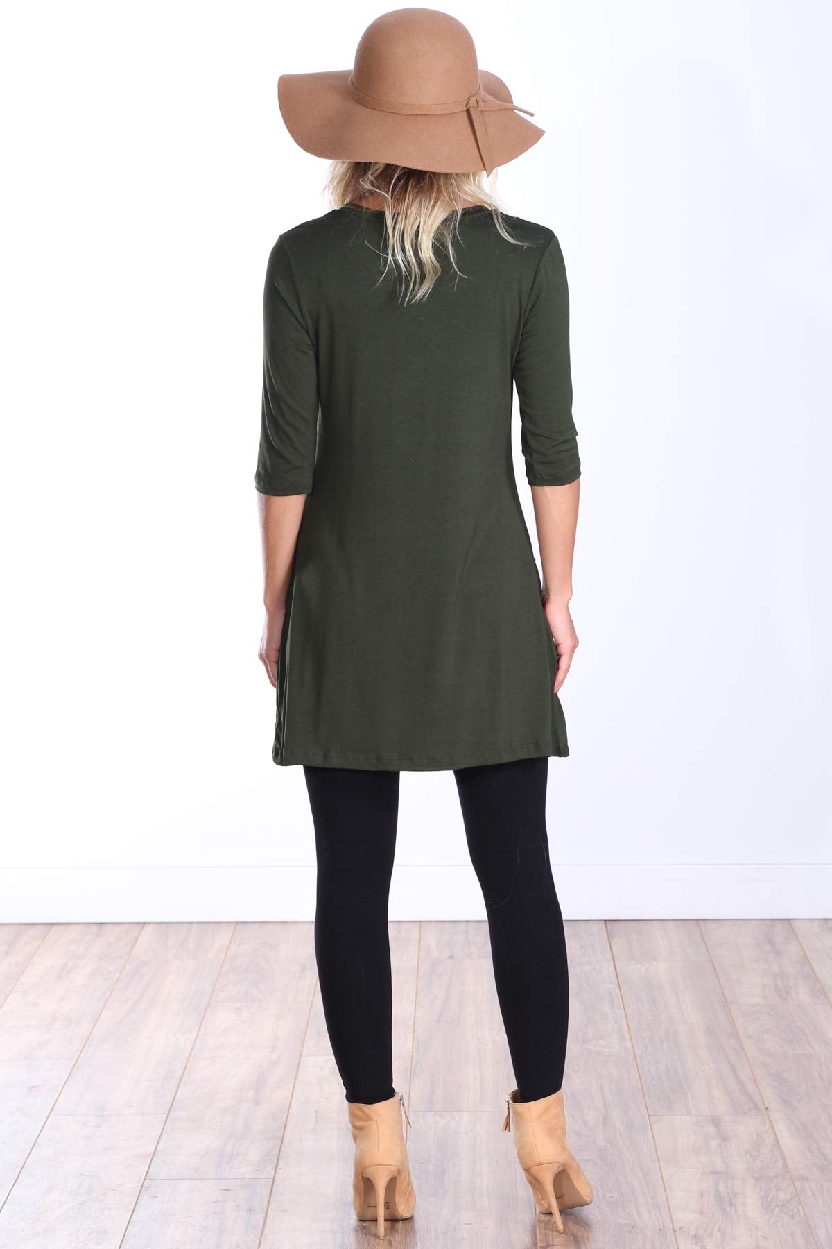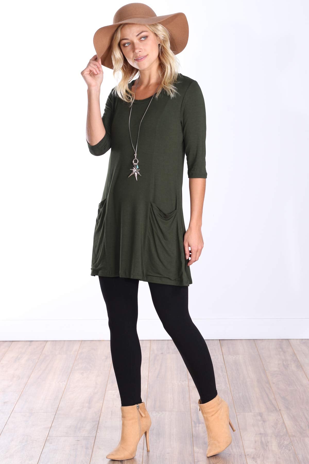 Popana Womens 3/4 Sleeve Tunic Top with Pockets for Leggings Made in USA Olive