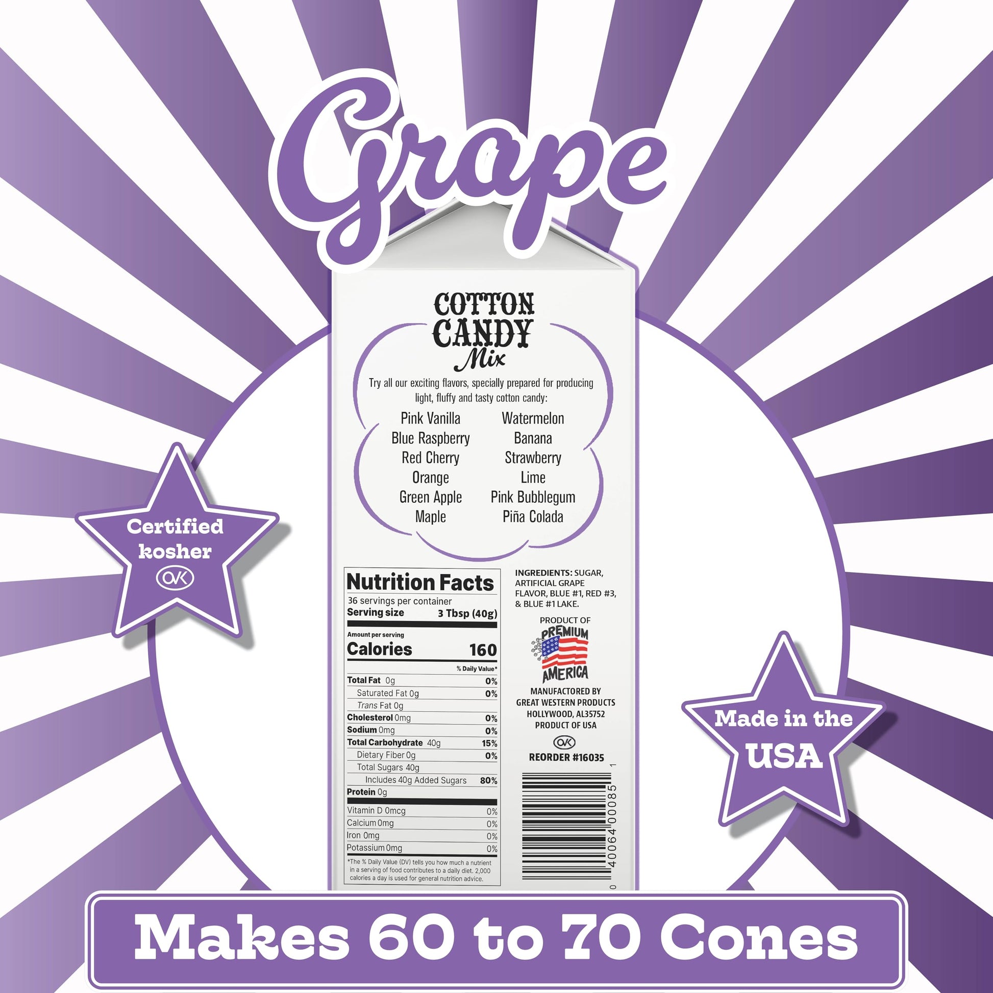 - CARNIVAL MAGIC, ANYTIME: Step right up and bring fairground vibes to your kitchen! Our grape cotton candy sugar floss is pre-mixed and ready to go. Spin up fluffy, melt-in-your-mouth sweetness with a bold, juicy grape flavor that’ll transport you straight to the carnival.