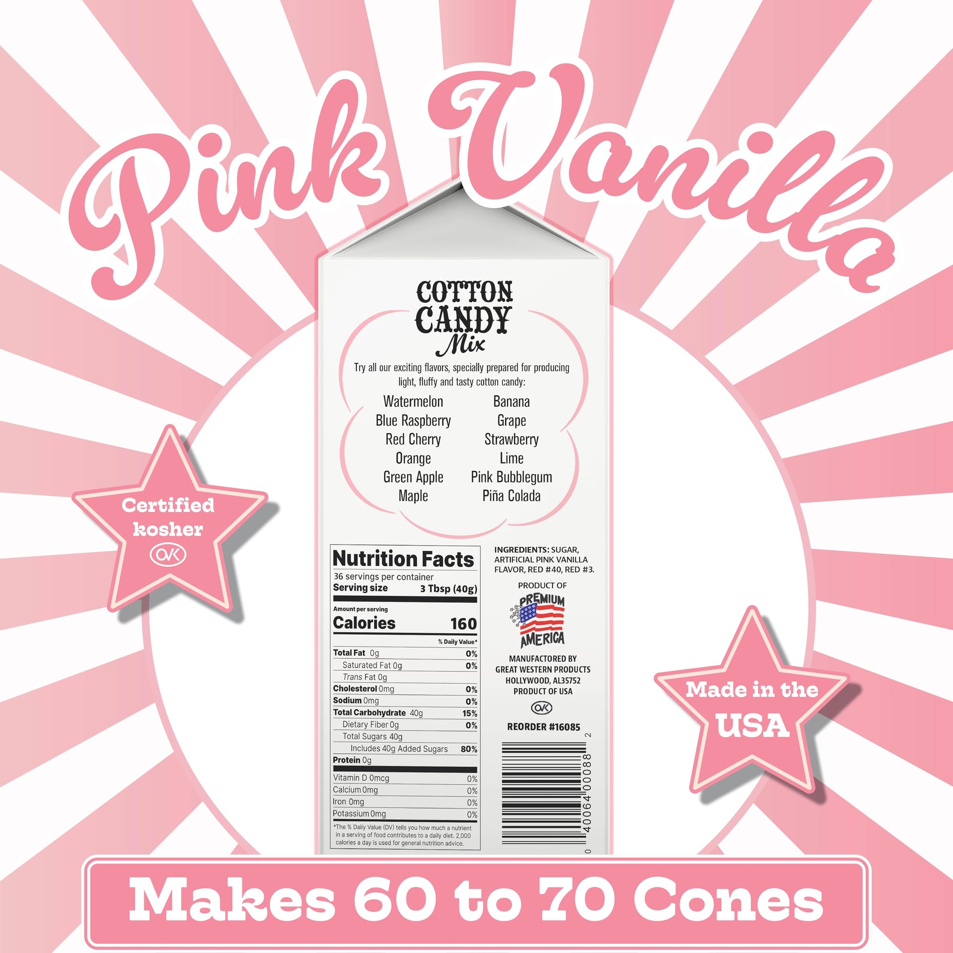 - CARNIVAL MAGIC, ANYTIME: Step right up and bring fairground vibes to your kitchen! Our pink vanilla cotton candy sugar floss is pre-mixed and ready to go. Spin up fluffy, melt-in-your-mouth sweetness with a rich, classic vanilla flavor and a playful pink color to match.