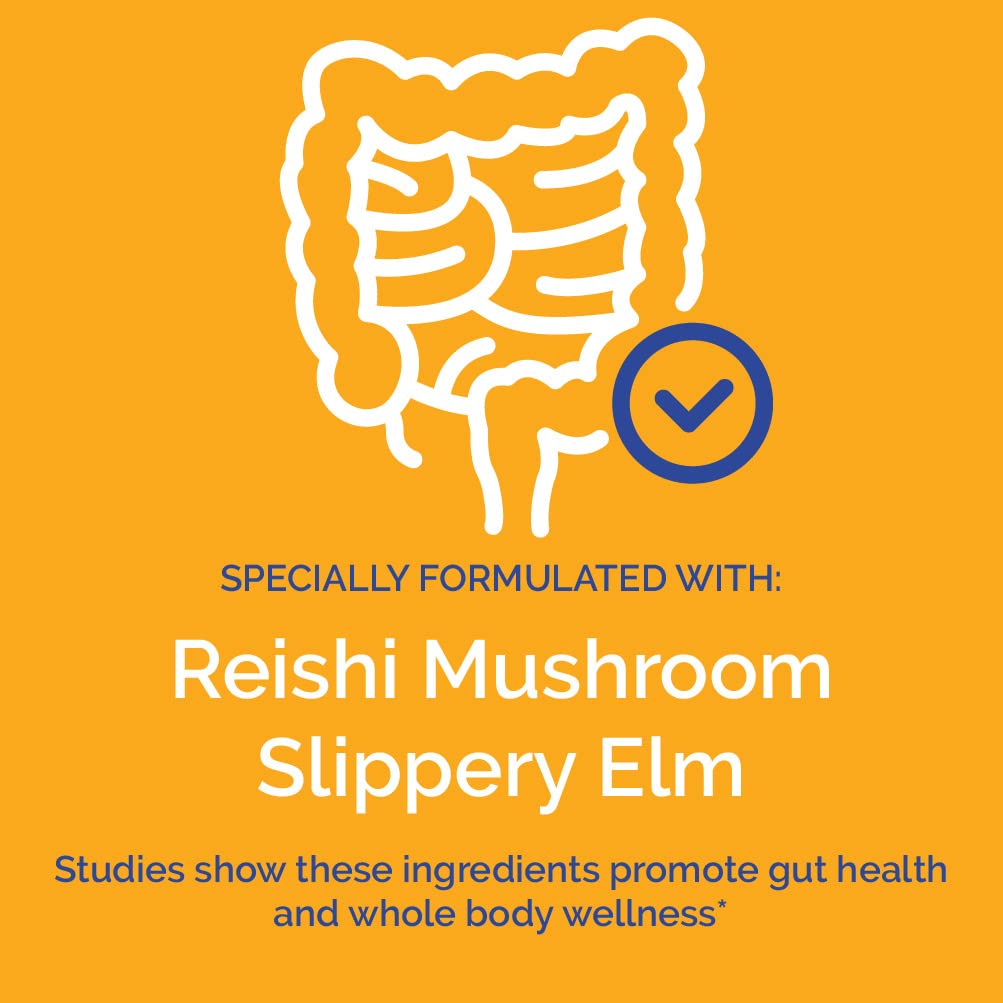 Probiotic for Digestive Health & Gut Immunity - Slippery Elm & Reishi Mushroom Supplement Supercharged with Two Probiotic Strains to Help Balance The Gut Microbiome (60 Count - 1 Month Supply)