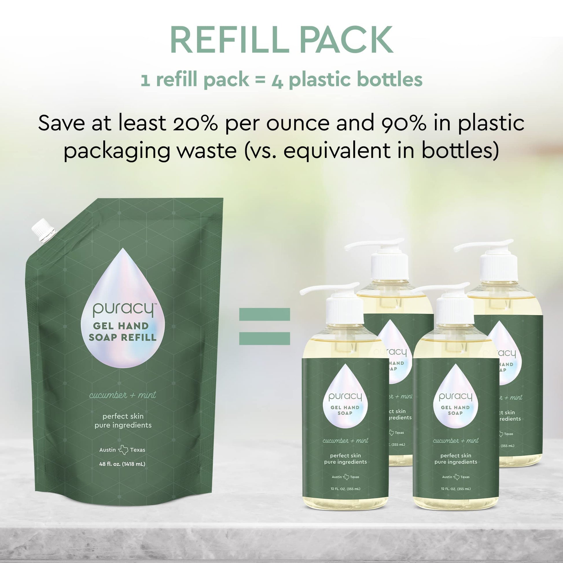 Puracy Organic Hand Soap, Professional Hand Washers We've All Become, Moisturizing Natural Gel Hand Wash Soap, Liquid Hand Soap Refills for Soft Skin (Refill Cucumber & Mint, 48 Ounce)