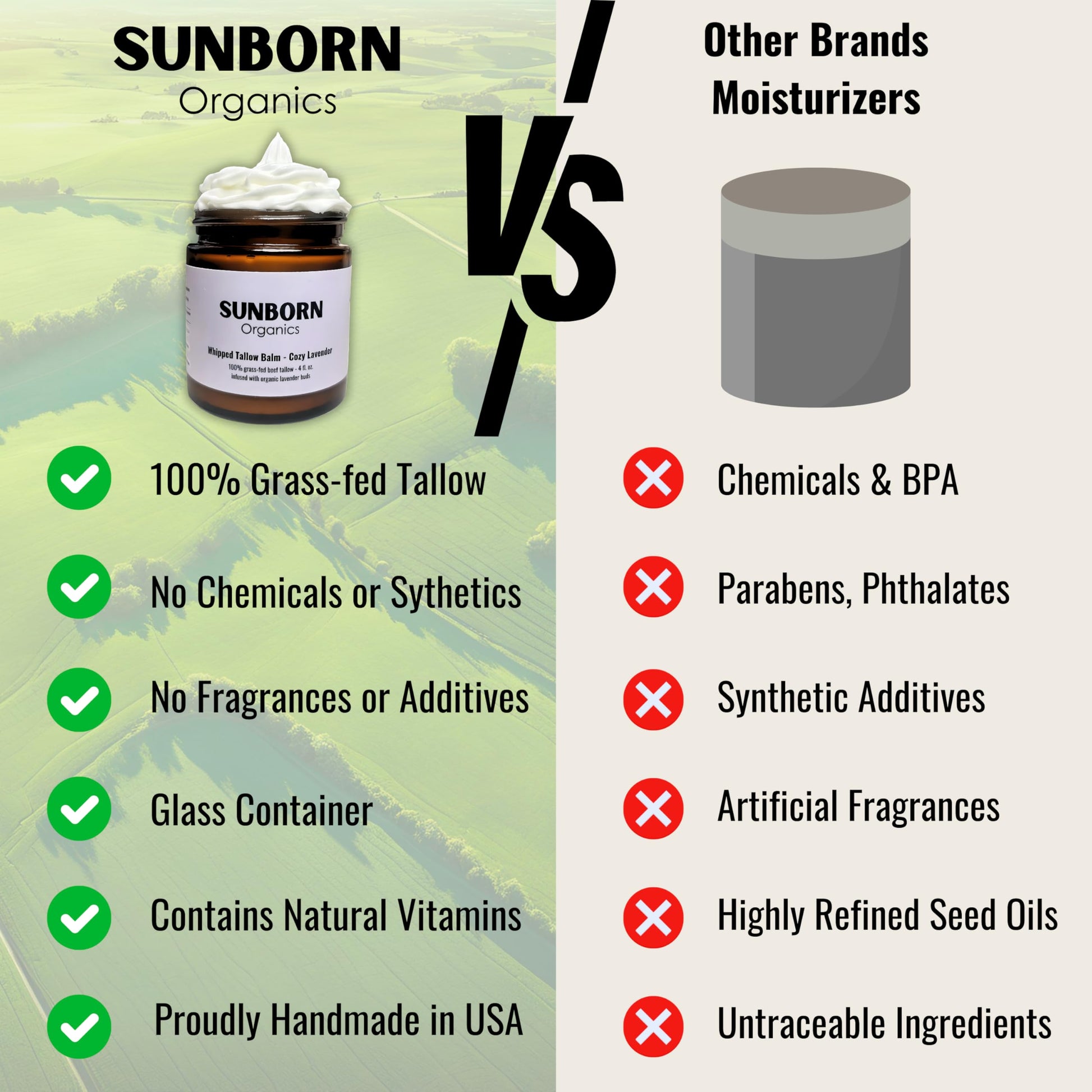 - HANDCRAFTED IN USA: Our beef tallow moisturizer is raised, sourced, and handmade with love in New Hampshire.