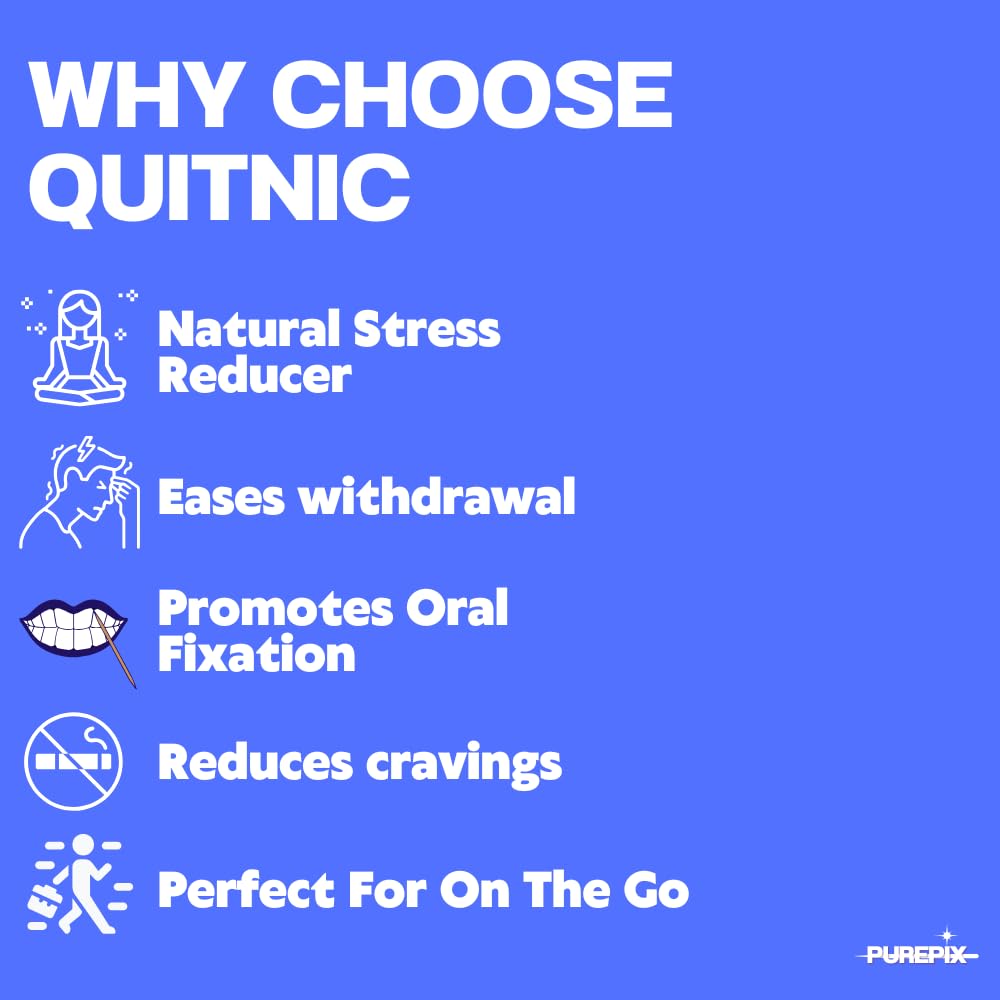 - A Flavorful Way to Stay on Track Quit-NIC flavored toothpicks are your go-to companion for curbing cravings throughout the day. Bursting with bold, refreshing flavor, these picks help keep your mouth busy and your mind focused—wherever life takes you.