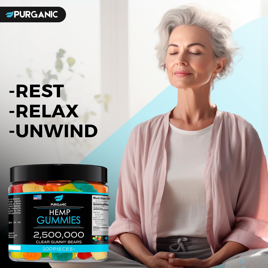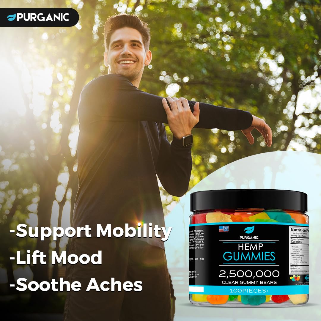 Purganic Hemp Gummies - Made in USA - 100% Natural and Tasty Fruit Flavors - 100ct