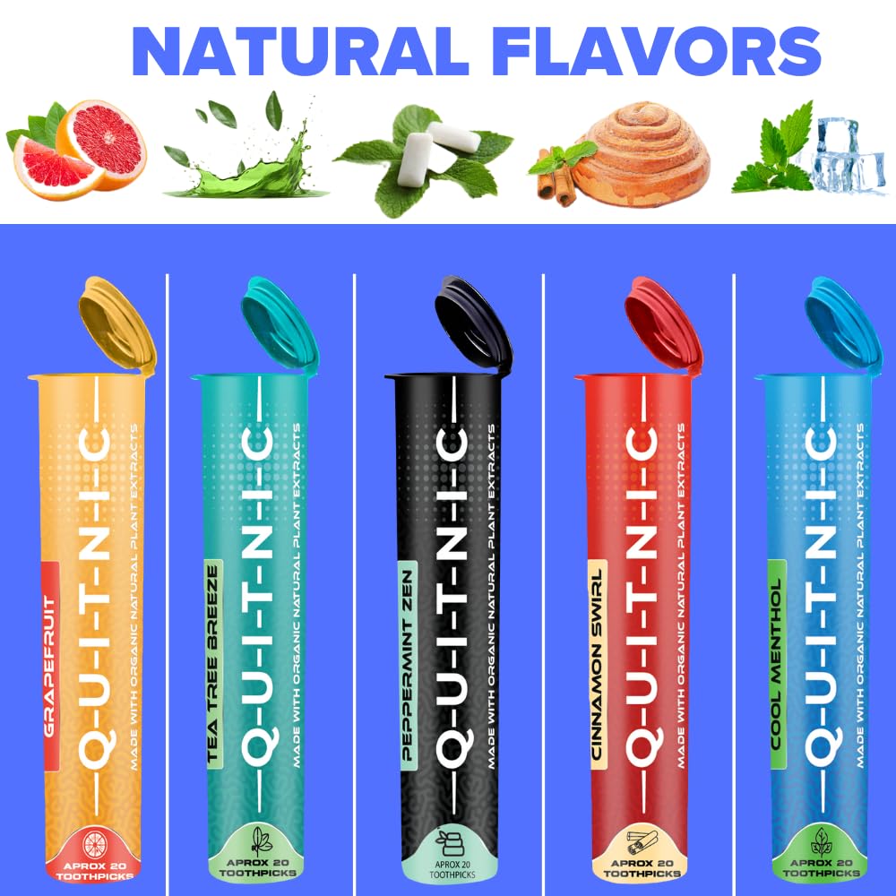 - Choose Your Flavor Mood - Cool down with icy menthol or spark things up with warm cinnamon. With a variety of bold, palate-pleasing options like peppermint and beyond, Quit-NIC toothpicks offer something for every mood and moment.