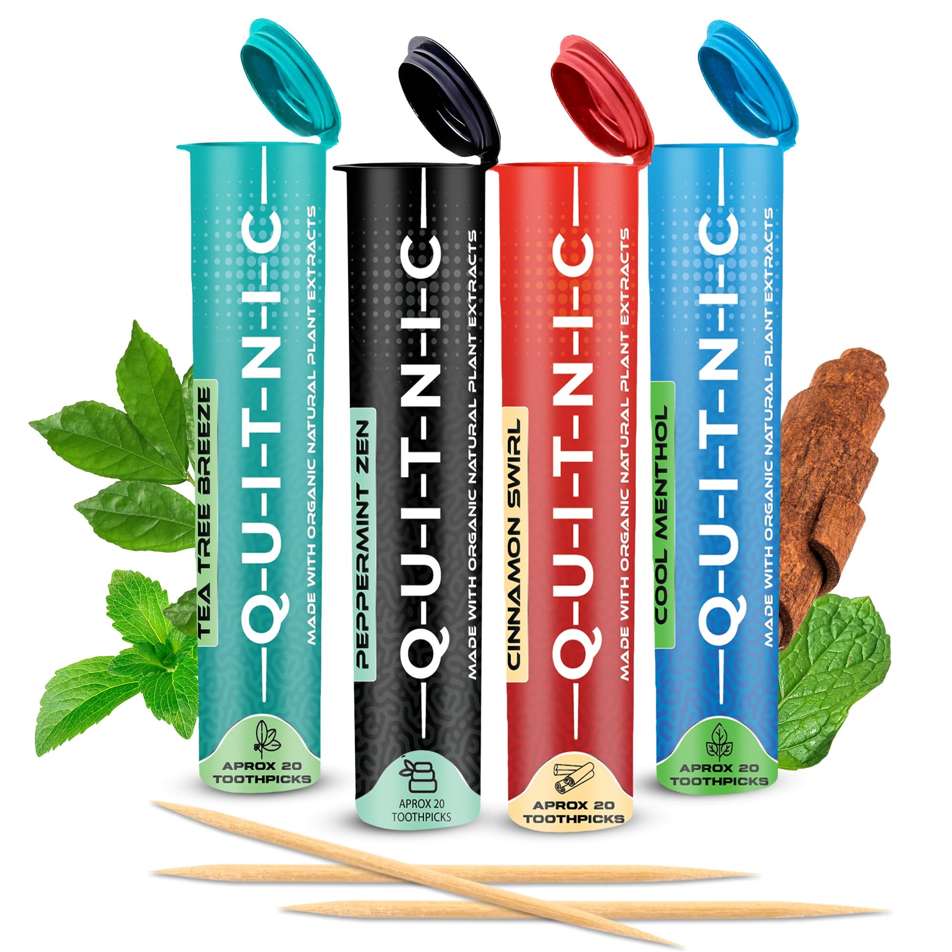 Quit-NIC Infused Flavored Toothpicks - Nicotine Free, Non-GMO Kosher Vegan Variety Pack, 20 Count (Pack of 4) - Flavored Toothpicks for Adults to Help Quit Smoking and Quit-NIC