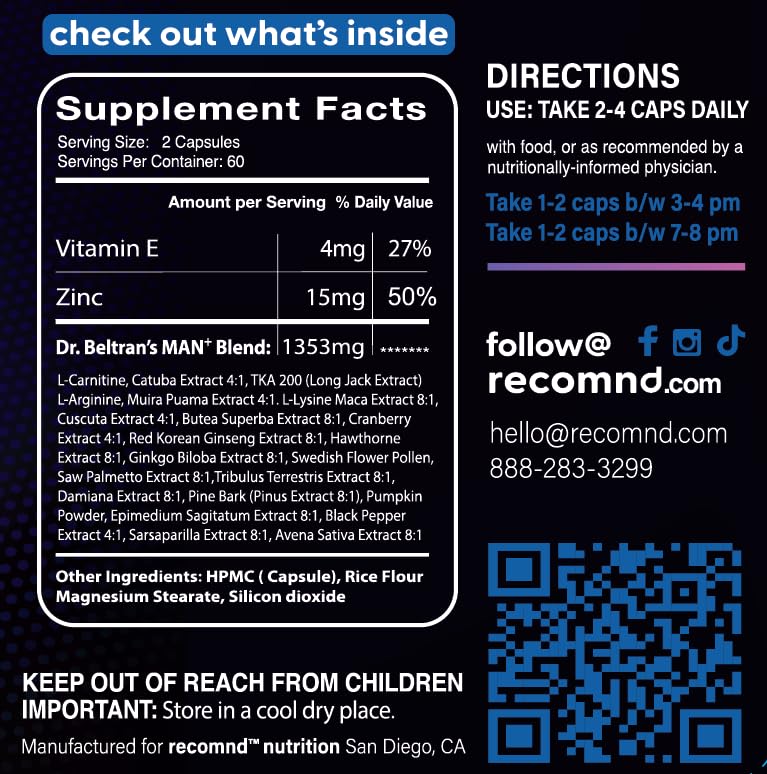 recomnd Nutrition - Man+ Formula, Energy Support, Muscle Support, and Prostate Health Supplements for Men with Vitamin E, Saw Palmetto, Red Korean Ginseng, and More, 120 Capsules