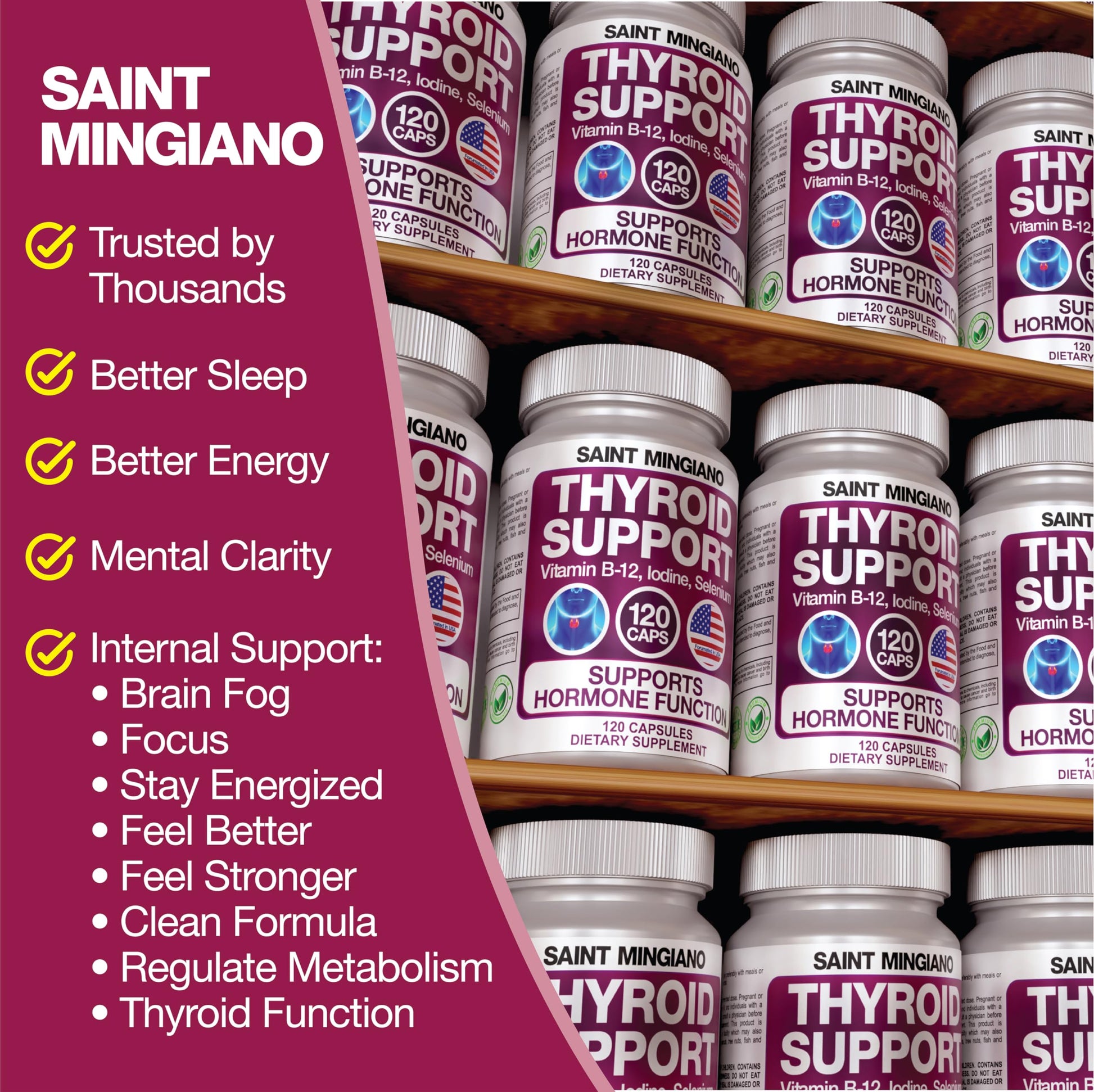 Saint Mingiano Thyroid Support Supplement with Iodine |120 Capsules to Help Body Mass & Improve Energy, Cardiovascular, Energy & Focus Formula | 14 Natural Vitamins
