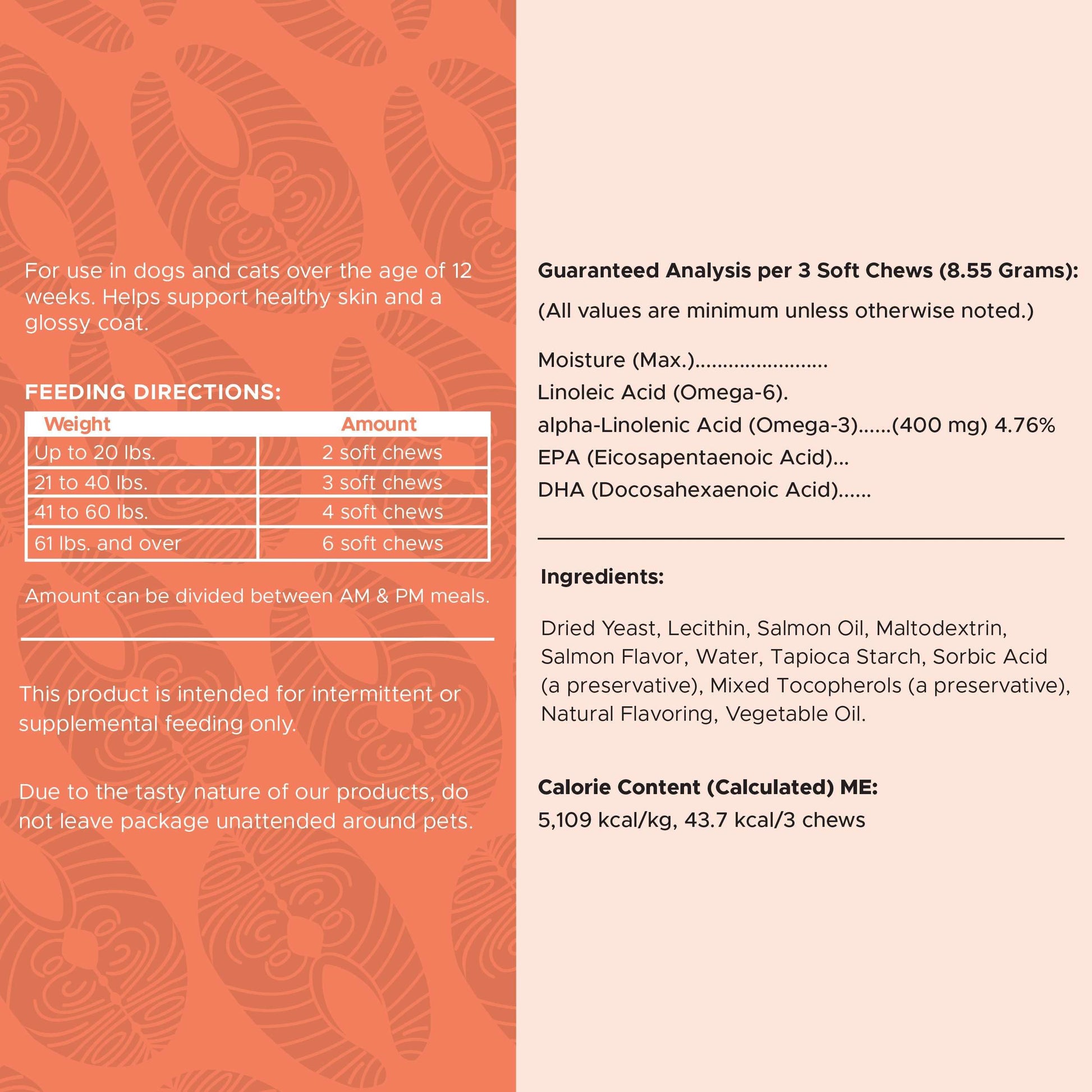Salmon Oil for Dogs - Soft Chew Omega Treats for Skin and Coat - Fish Oil Blend of Essential Fatty Acids, Omega 3 and 6, Vitamins, Antioxidants and Minerals - Made in USA
