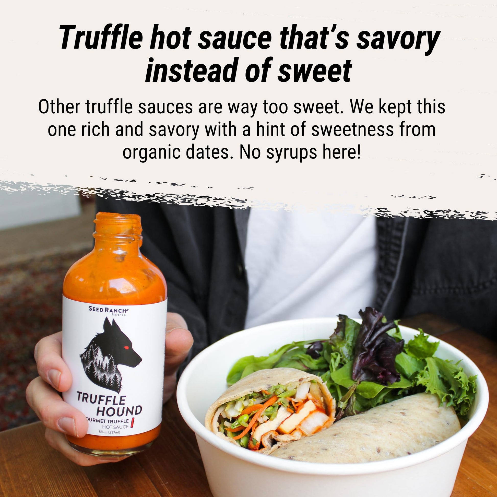 - DELICIOUS TRUFFLE FLAVOR: Truffle Hound hot sauce is crafted with a blend of summer Urbani Italian truffles, providing a unique and savory flavor to enhance your dishes. Seed Ranch was Featured on Hot Ones Season 11 and 27.