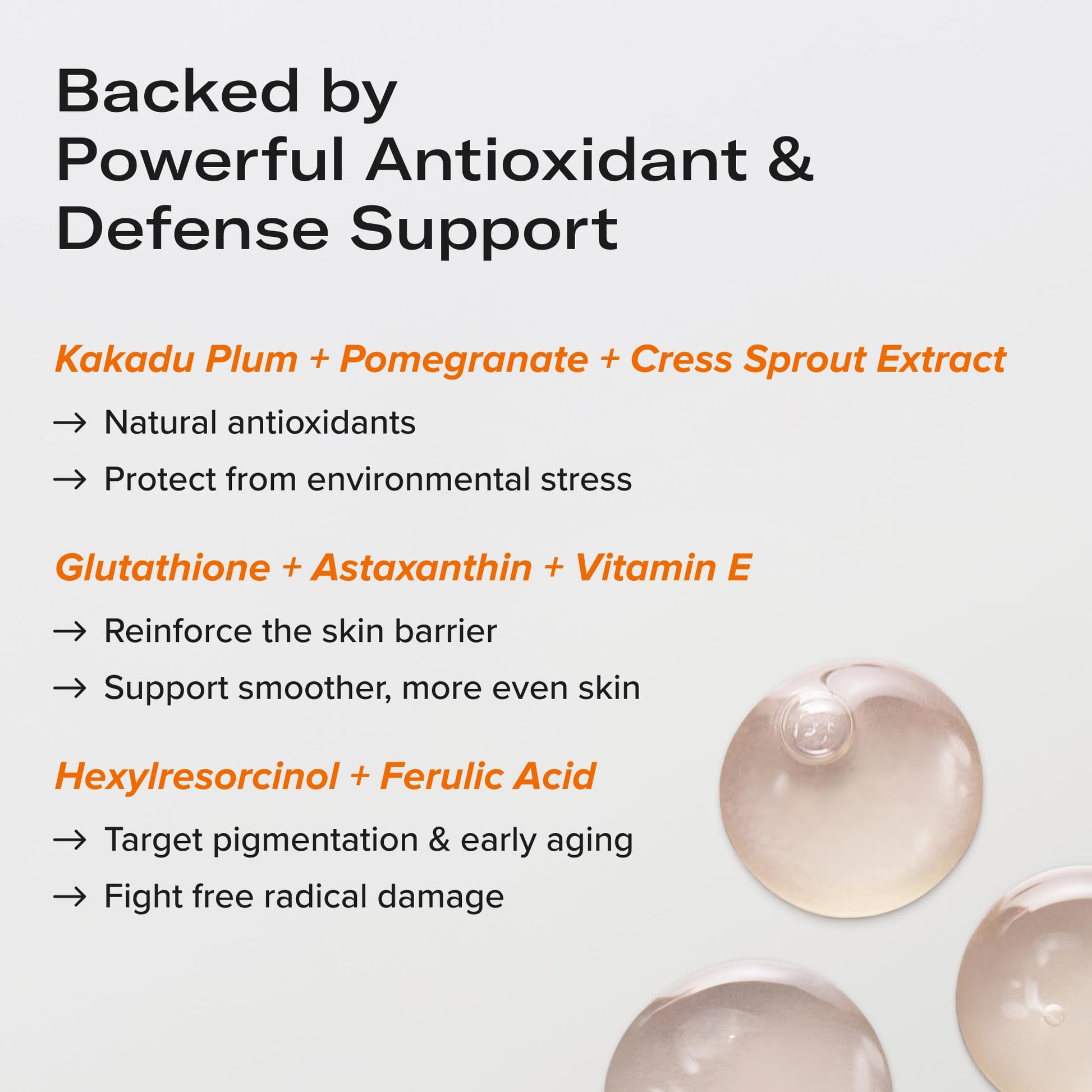 - ANTIOXIDANT SKIN DEFENSE: Glutathione, Astaxanthin, and Vitamin E protect against pollution and free radical damage; strengthen the skin barrier; reduce oxidative stress