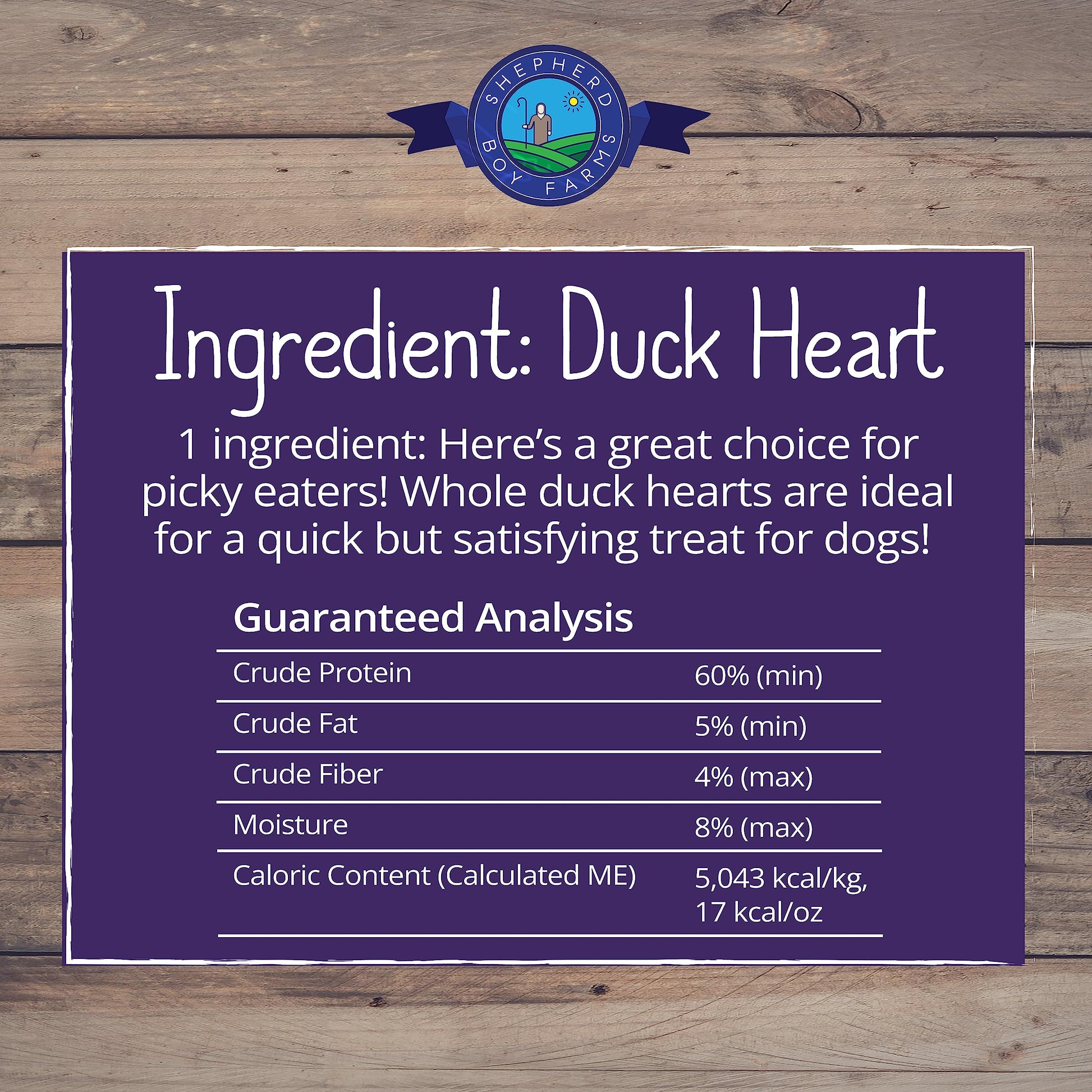 Shepherd Boy Farms Freeze Dried Dog and Cat Treats, Duck Heart, All Natural Single Ingredient Freeze-Dried Dog Treat & Snacks, Made in USA, High Protein, Essential Nutrition of Raw Food, 8oz