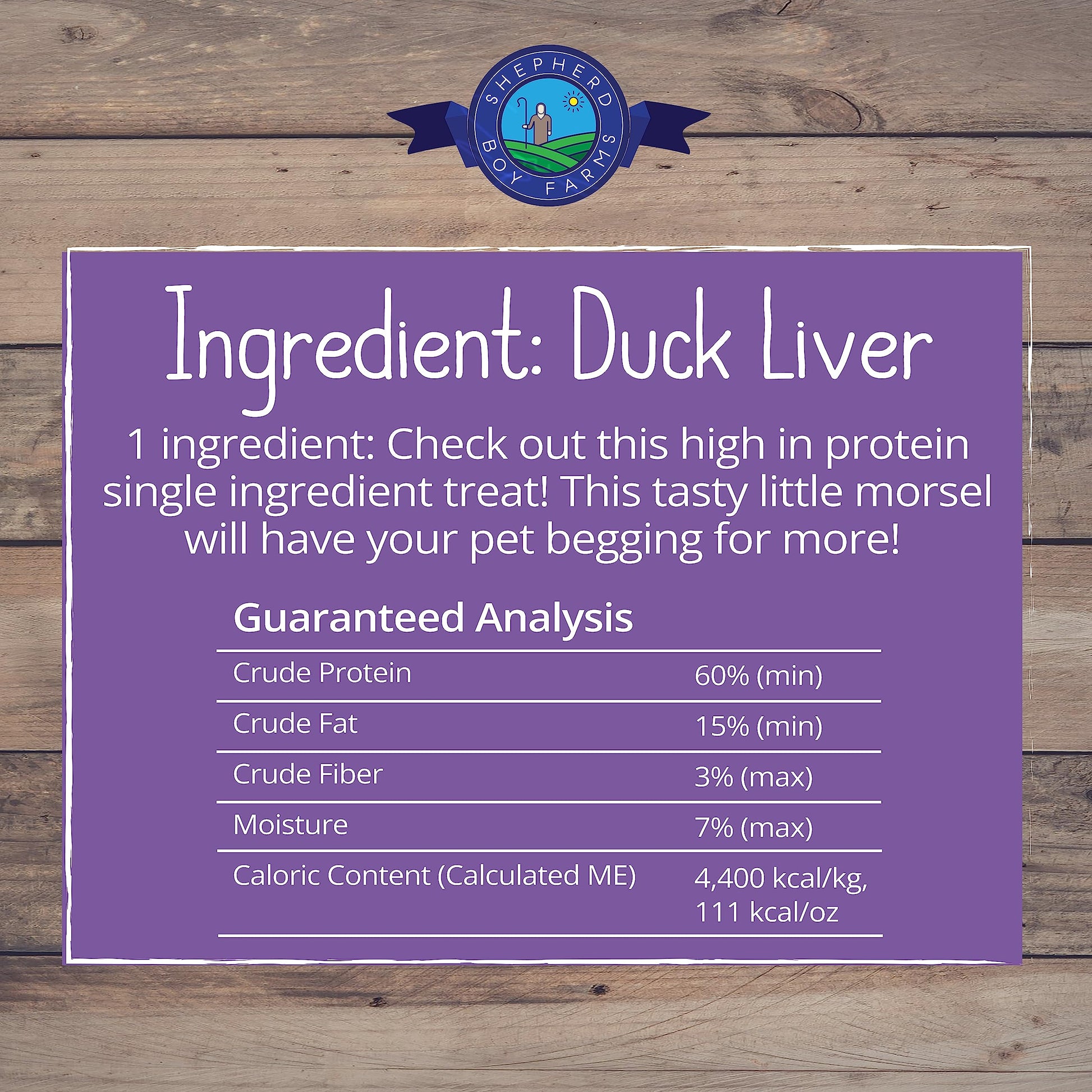 Shepherd Boy Farms Freeze Dried Dog and Cat Treats, Duck Liver, All Natural Single Ingredient Freeze-Dried Dog Treat & Snacks, Made in USA, High Protein, Essential Nutrition of Raw Food, 8oz