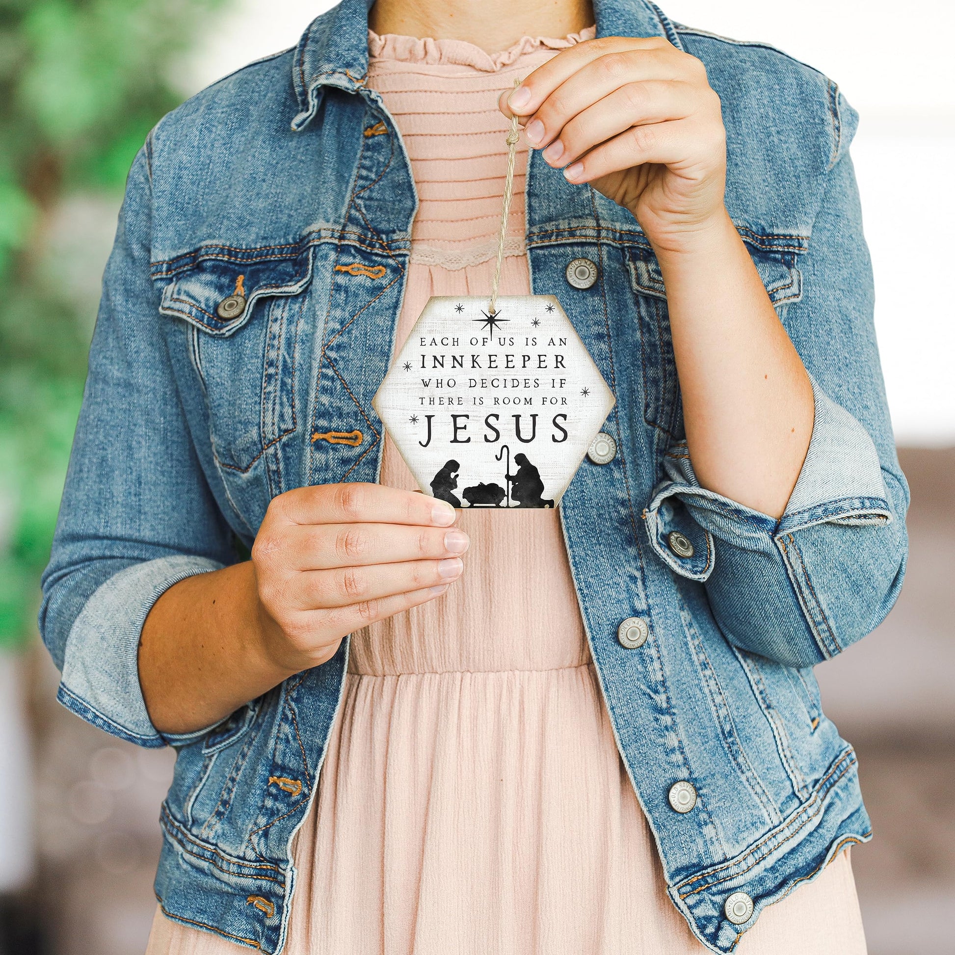 - WOODEN CHRISTMAS ORNAMENT - Wood ornament reads "Each of us in an innkeeper who decides if there is room for Jesus" and features a Nativity design. Add a warm, rustic touch to your Christmas tree with wooden ornaments from Simply Said.