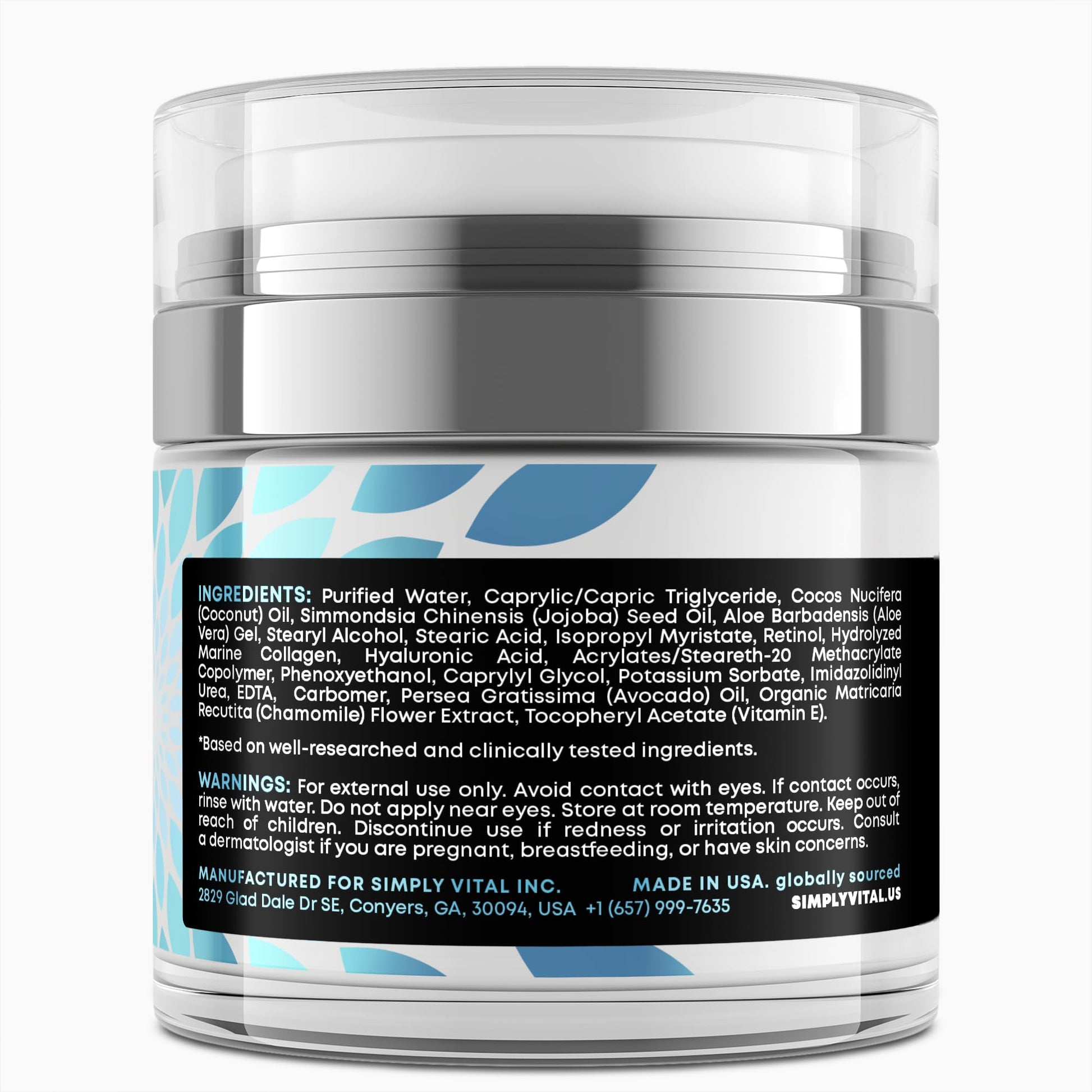 SimplyVital Collagen, Retinol & Hyaluronic Acid Cream - Anti-Aging Face Moisturizer for Face, Neck & Décolleté - Made in USA, Daily Moisturizer Face Cream - 1.7 fl.oz.