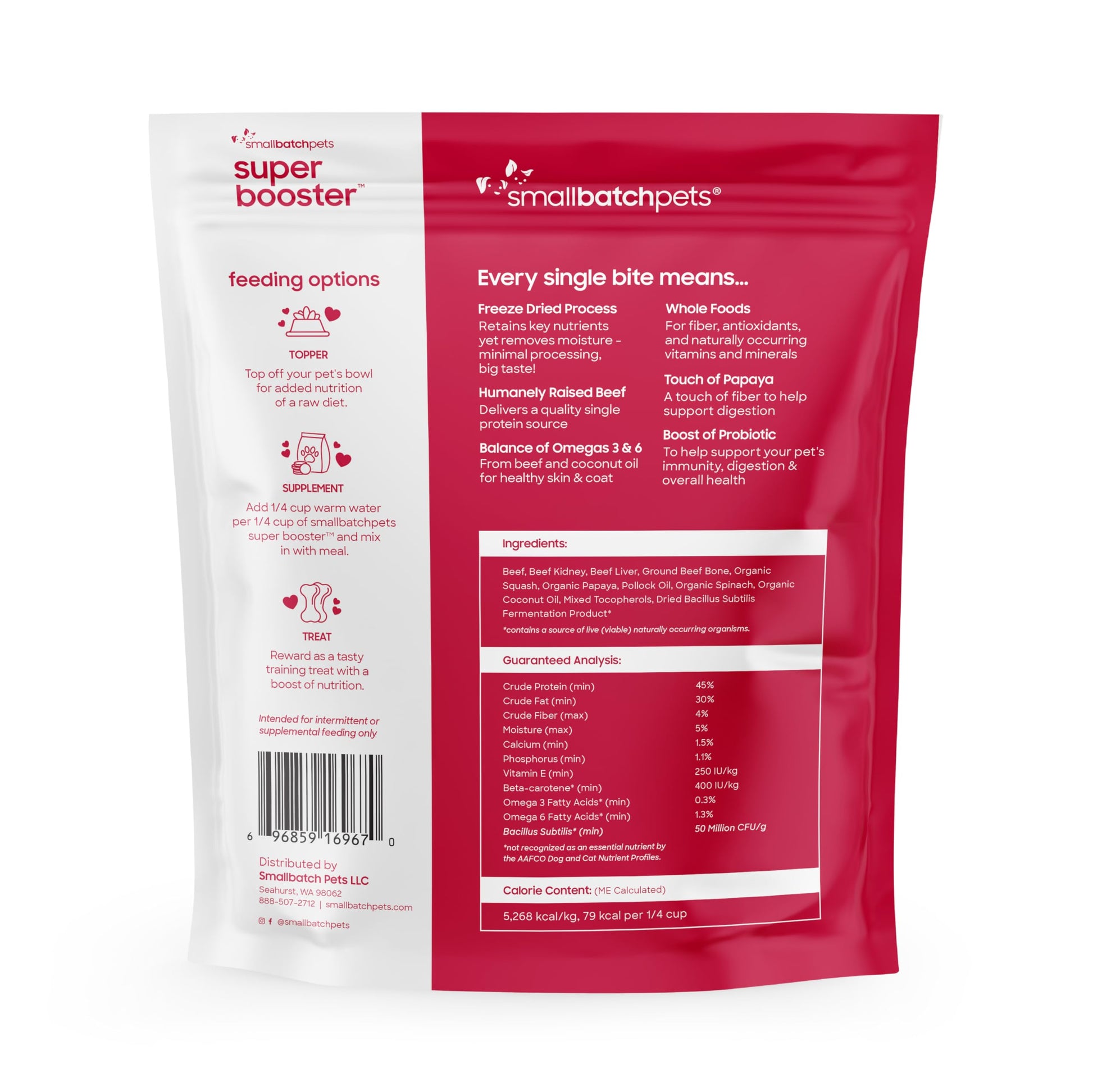 smallbatch Freeze Dried Dog Treats, Superfood Food Topper Beef Bites for Dogs & Cats, Probiotics, Organic Ingredients, High Protein, Grain Free Healthy Treat Food Topper, Made in The USA, 7 oz Bag