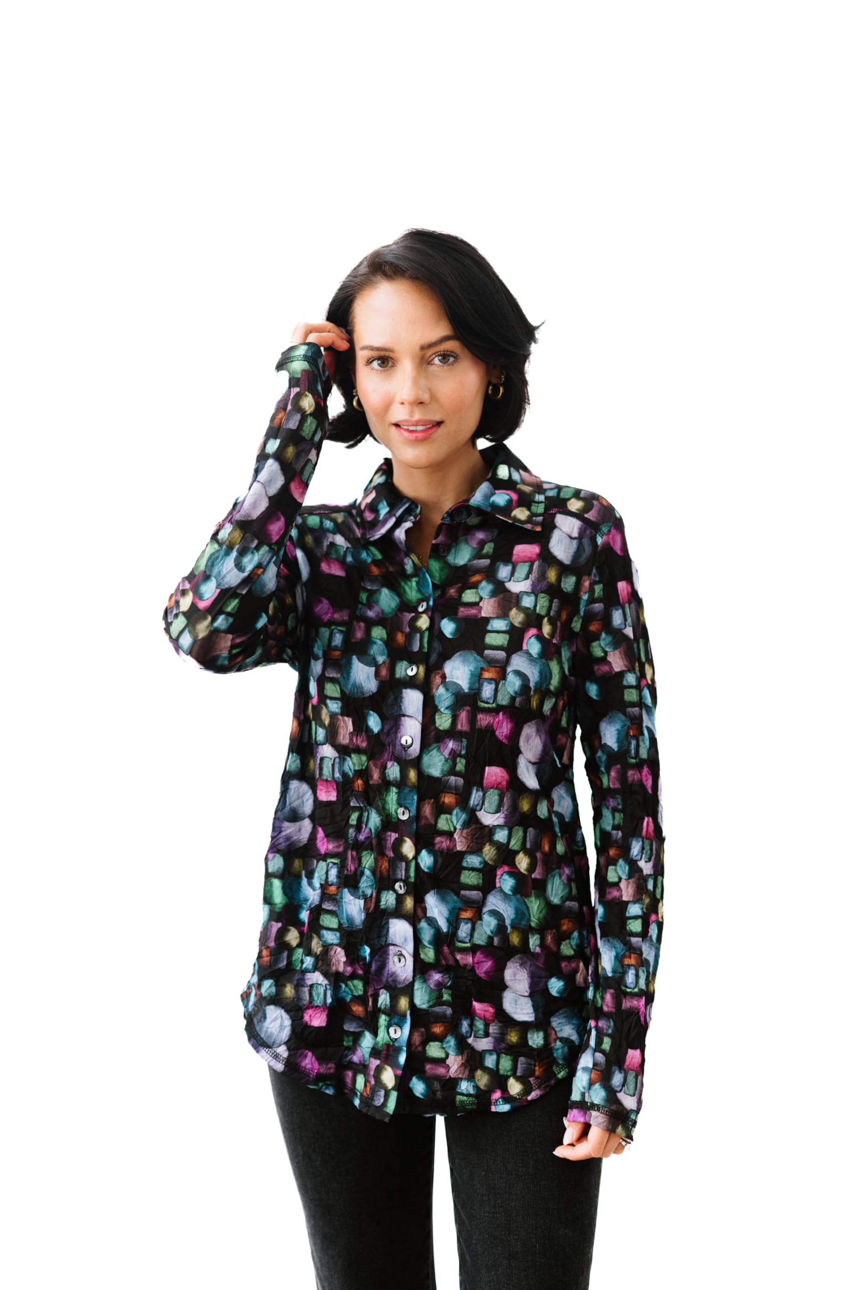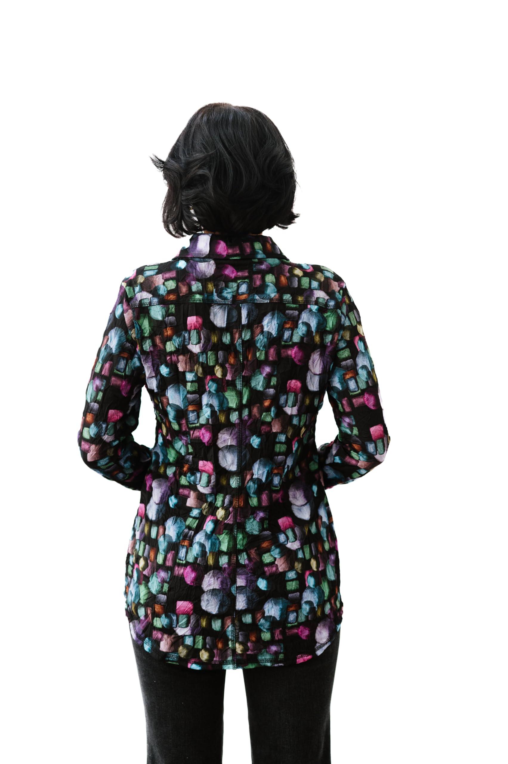 - Each designer top undergoes a highly specialized process to create the unique finish and feel of our signature crinkle design.