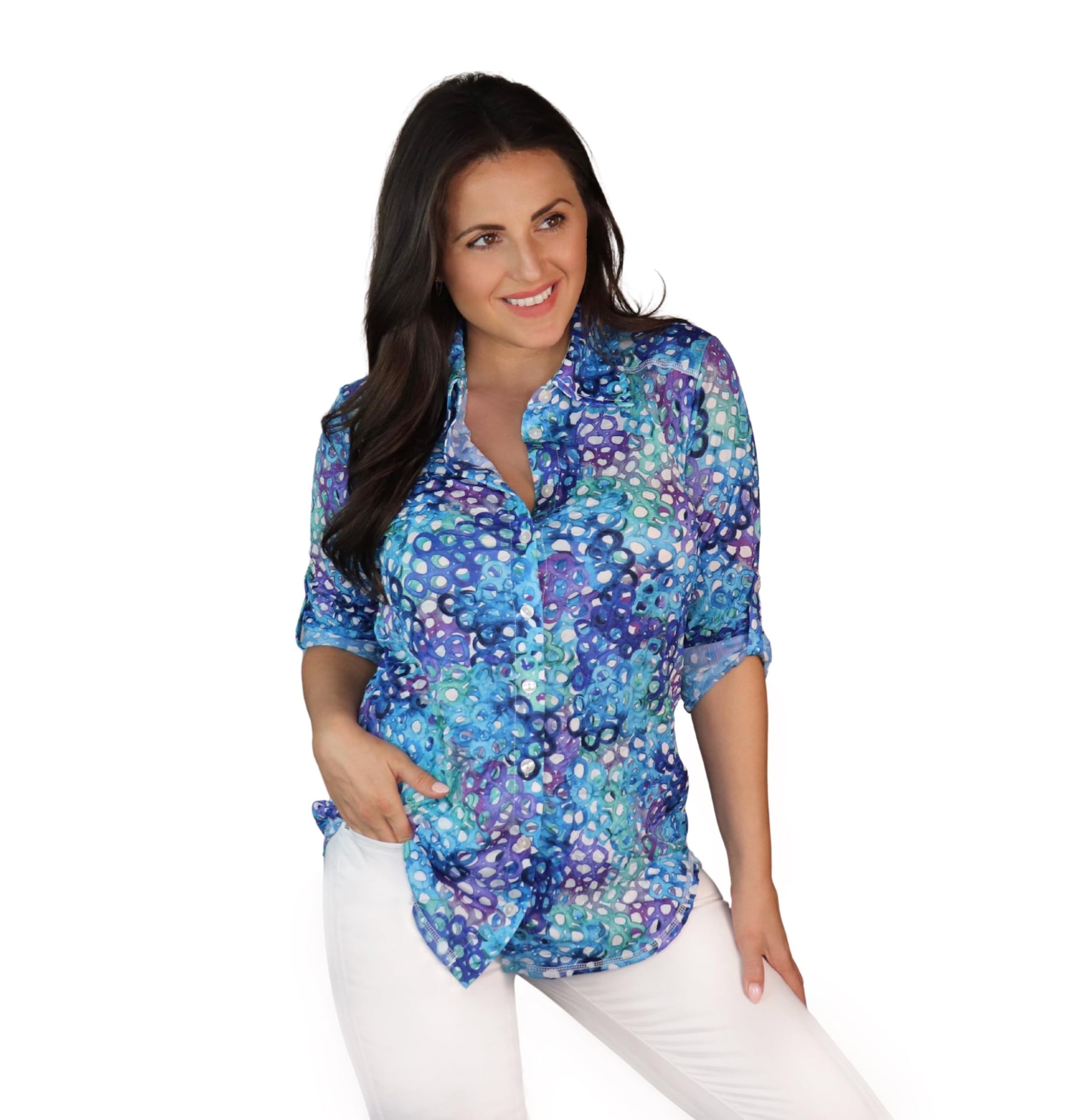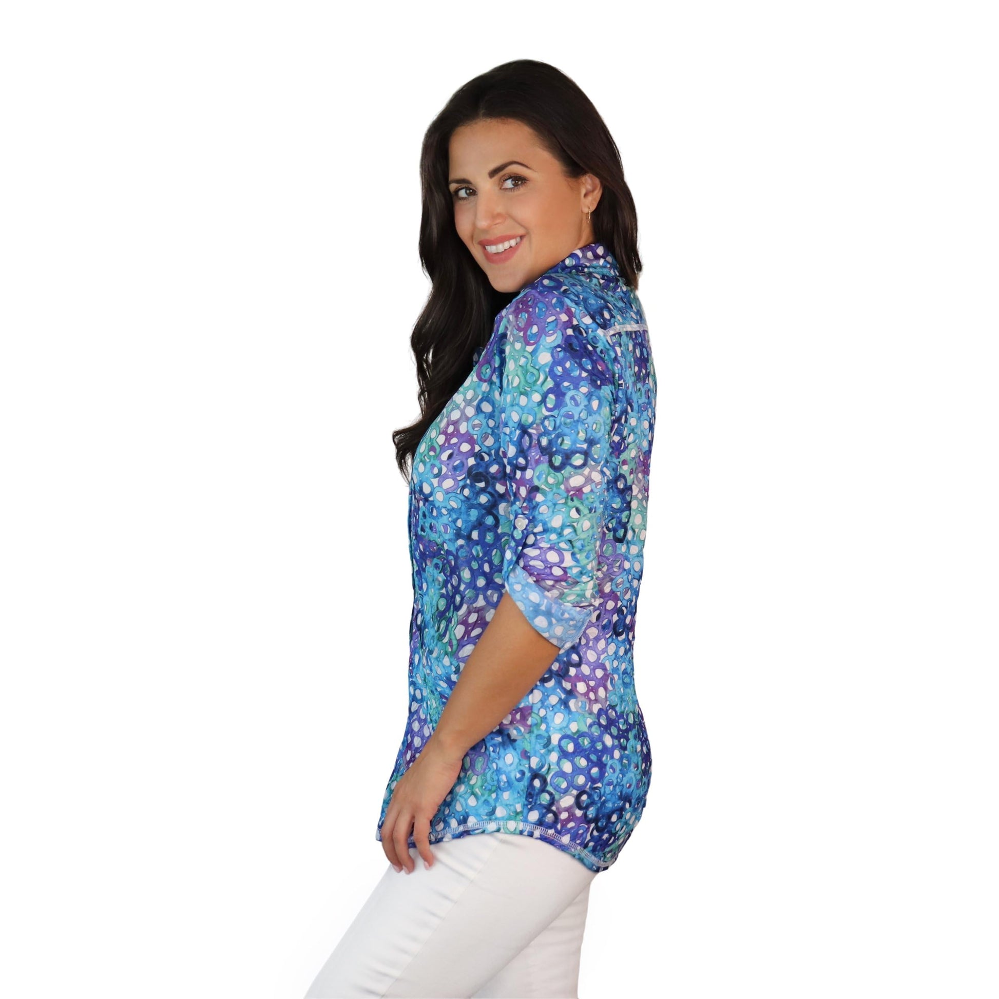 SNO SKINS Spring/Summer Collection Designer Print Crinkle Button-Down Shirt (Bubbles)