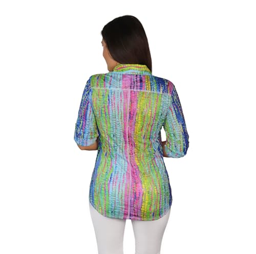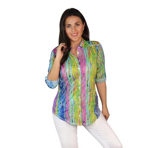 SNO SKINS Spring/Summer Collection Designer Print Crinkle Button-Down Shirt (Wavy)
