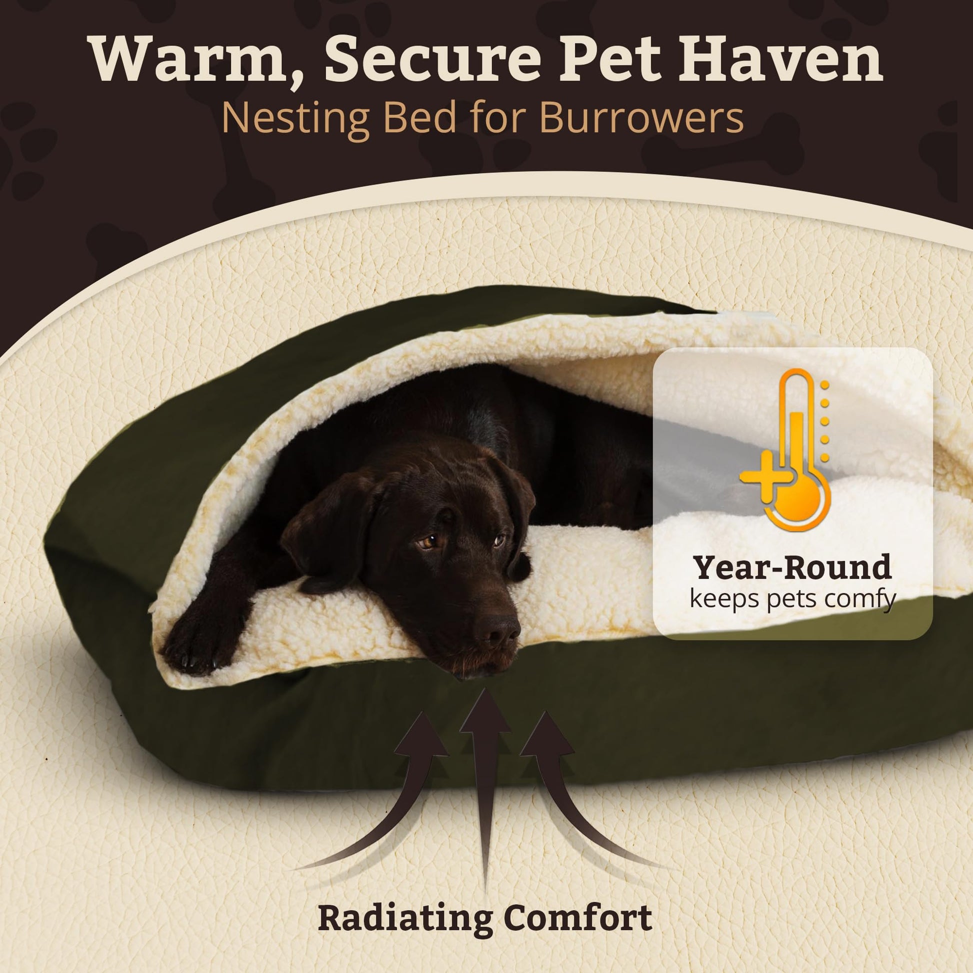 - LIKE A HUG FOR YOUR DOG! Is your dog a cuddler? A burrower? The Cozy Cave dog bed is just what you’re looking for! The hooded dog bed design lets your dog snooze between layers of soft Sherpa lining for enveloped comfort and coziness. Made to appeal to a dog’s natural instincts for burrowing, the Cozy Cave is the best dog bed for dogs who love sleeping under blankets. The Cozy Cave gives them a place to relax with a feeling of safety and security for less anxiety and more restful sleep.