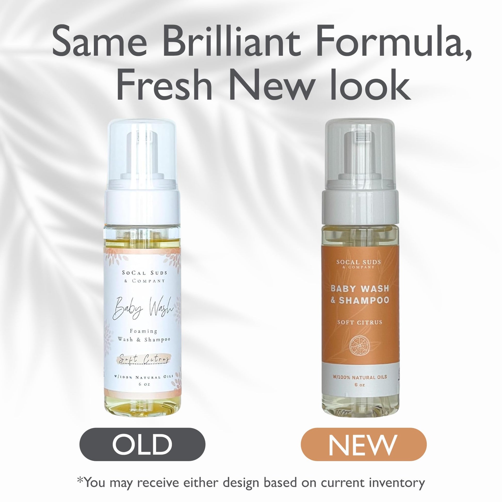 SoCal Suds & Company - 2-in-1 Organic Foaming Shampoo & Body Wash - Gentle Botanical Baby Wash for Sensitive Skin - Clean Natural Nourishing Soothing Castile Soap - Newborn Baby - Soft Citrus, 6oz