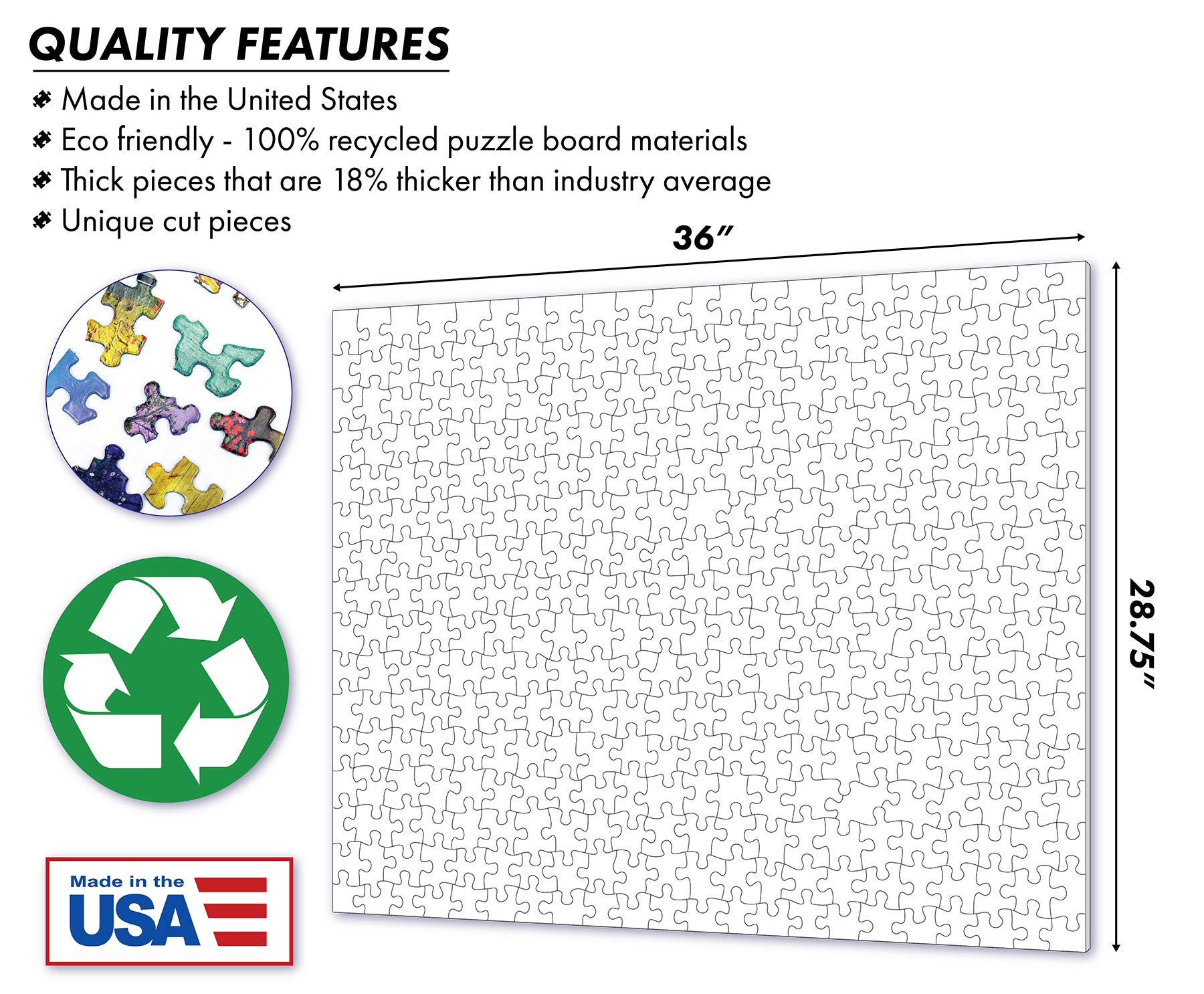 - 1500 PIECE PUZZLE FOR ADULTS - Featuring a finished size of 36 inches by 28.75 inches with a precision cut that ensures a tight, interlocking heirloom-quality puzzle