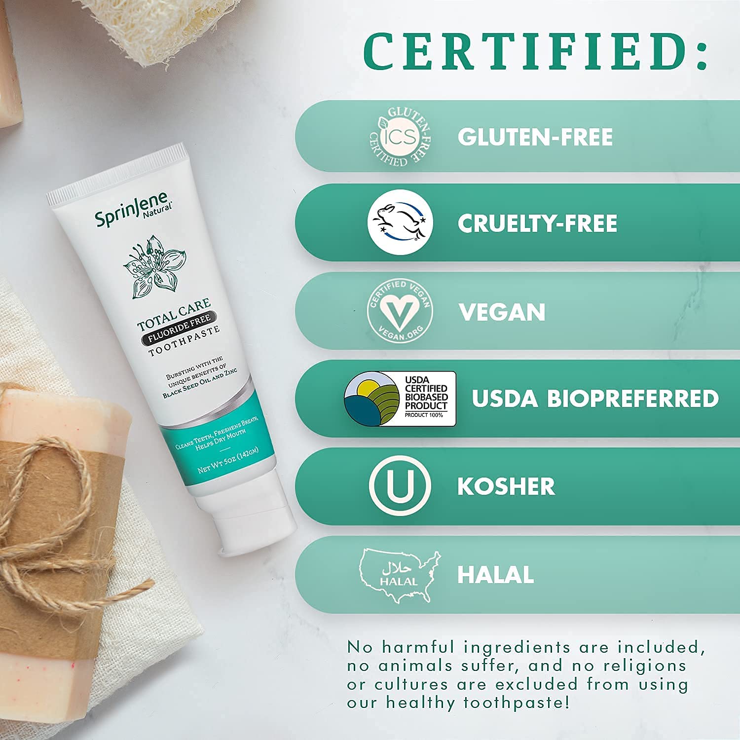 SprinJene Natural Total Care Fluoride Free Toothpaste – Patented Formula with Black Seed Oil & Zinc – Dry Mouth Toothpaste for Fresh Breath & Strong Teeth – Made in The USA (1 Pack)