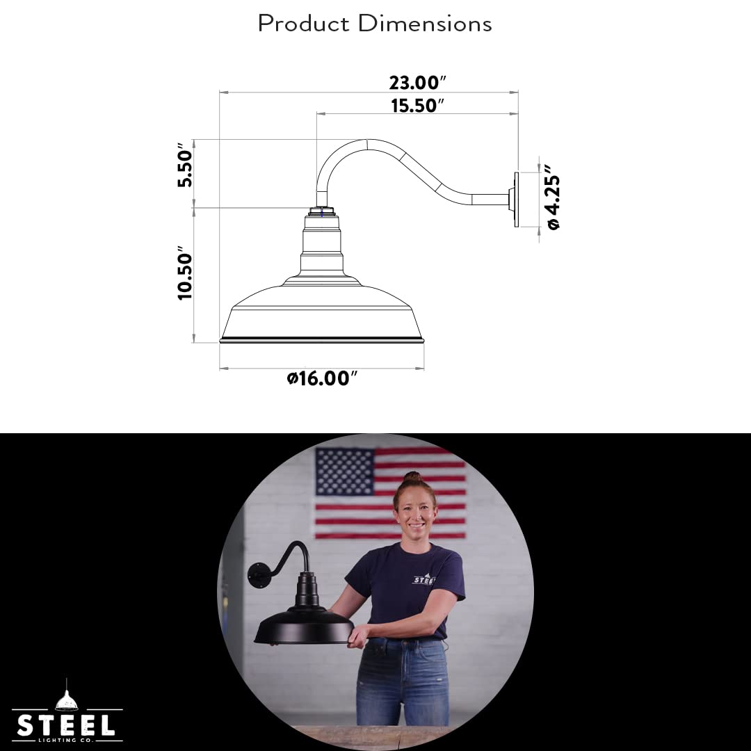 Steel Lighting Co. Gardena Barn Light | Outdoor Wall Mounted | 16" Dome | 16" Gooseneck | Farmhouse Light Made in America