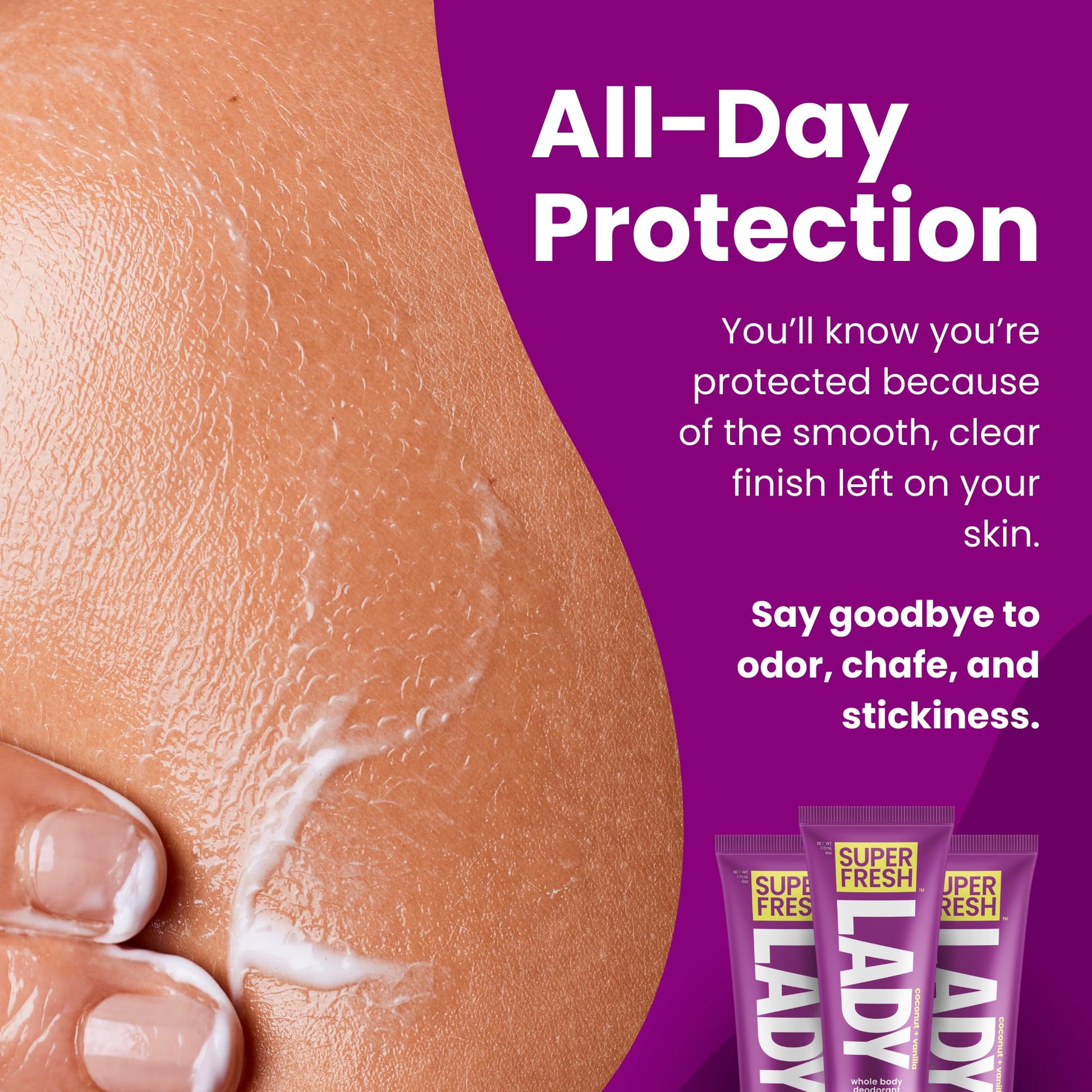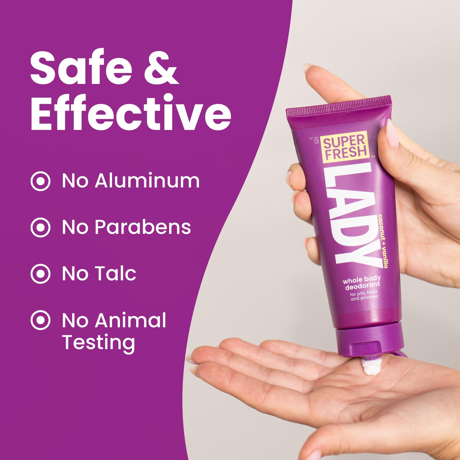 - FOR BODY, BREASTS, PRIVATE AREA FRESHNESS & COMFORT: Super Fresh Lady Parts women's deodorant lotion goes on smooth and keeps things fresh so you don't have to worry about odor, itch, & discomfort.