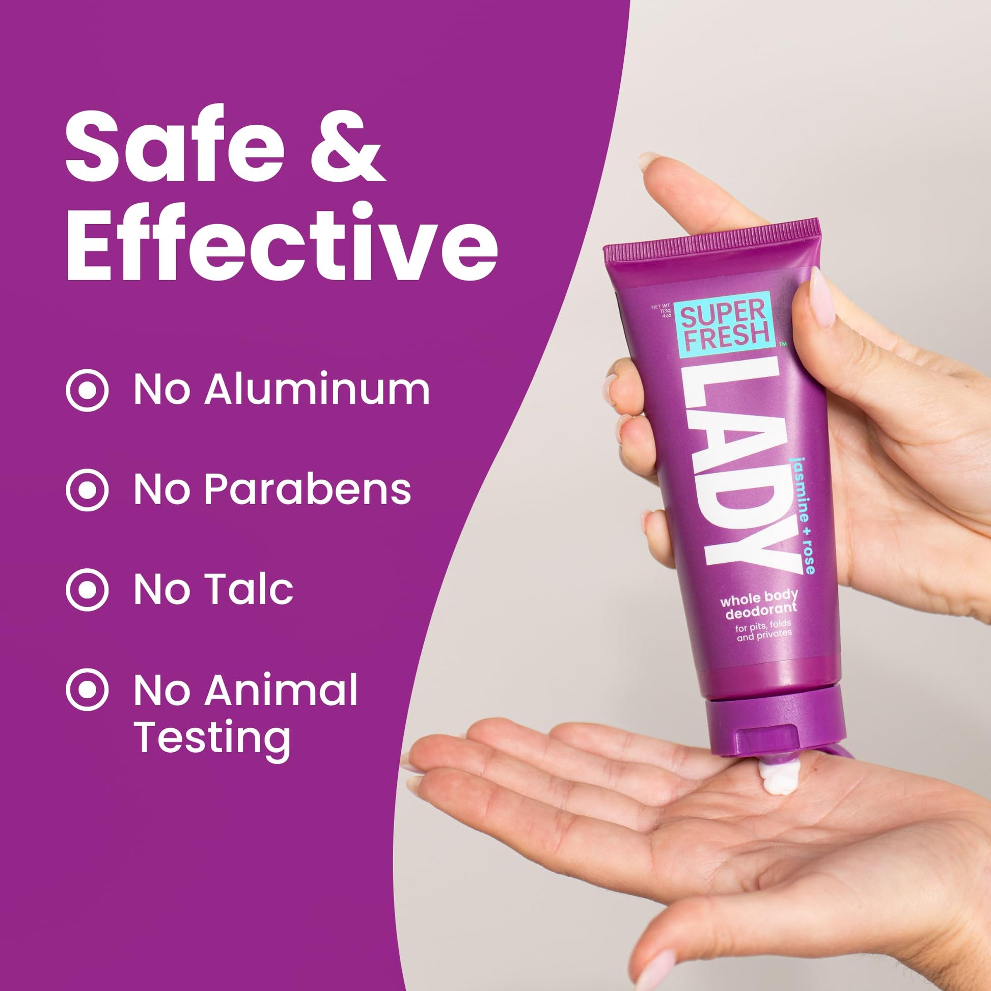 - FOR BODY, BREASTS, PRIVATE AREA FRESHNESS & COMFORT: Super Fresh Lady women's deodorant lotion goes on smooth and keeps things fresh so you don't have to worry about odor, itch, & discomfort.