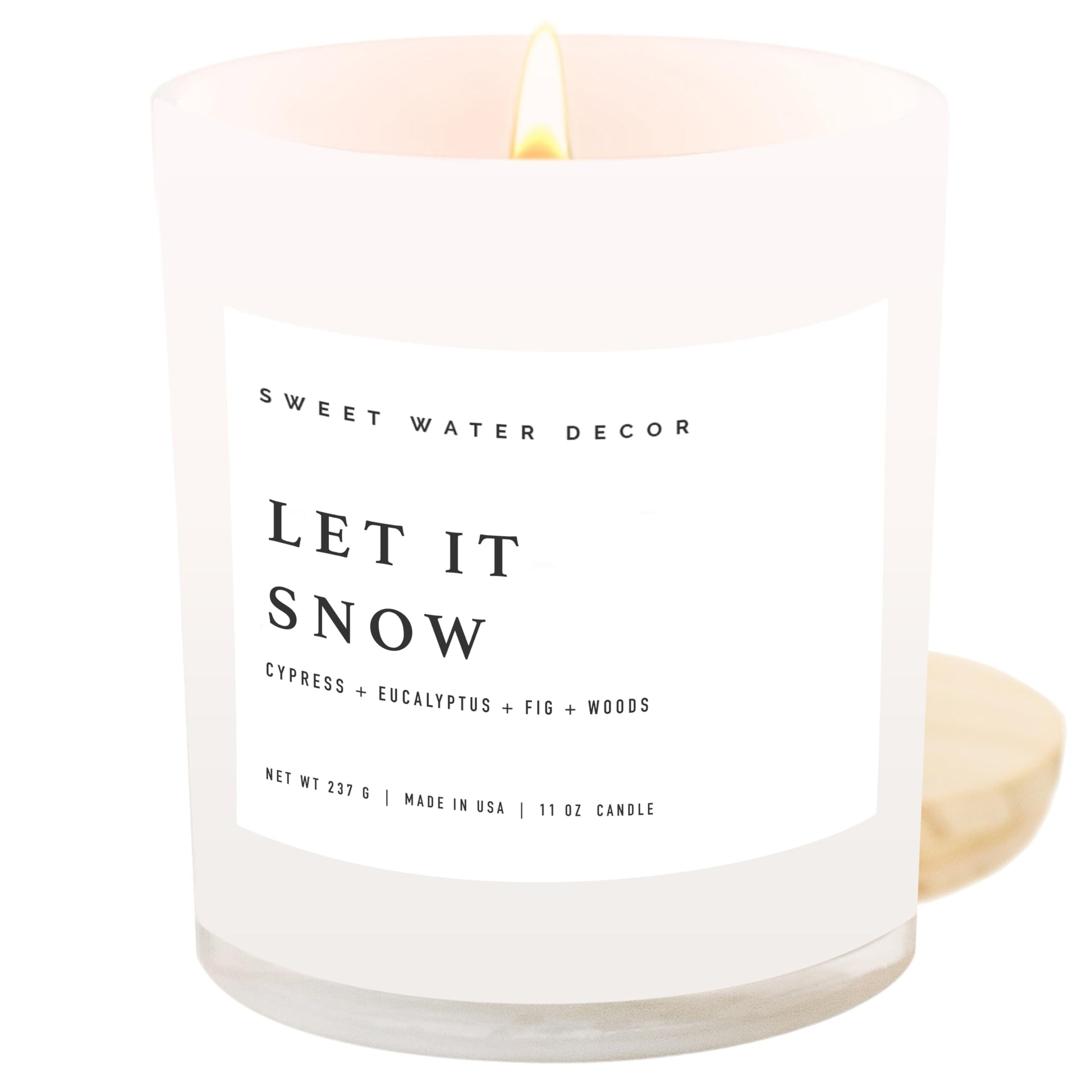 Sweet Water Decor Let it Snow Christmas Scented Candles - Christmas Stocking Stuffers Soy Candles with Cypress Scent - Christmas Candles with 50 Hours Burn Time - 11Oz Wood Lid White Jar Wax Candles