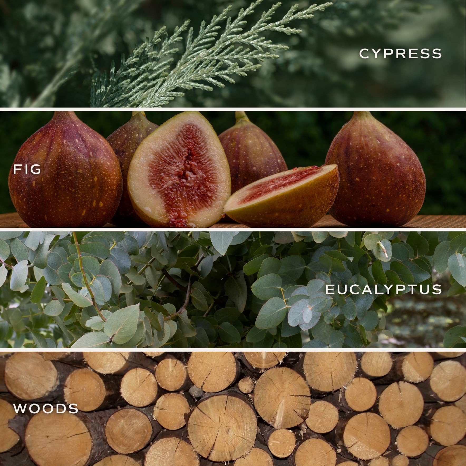 - Smells Like - A refreshing holiday candle with sweet fig, crisp eucalyptus, warm cypress and soft musk, like a serene winter walk through a cypress forest. Perfect for cozying up your home or gifting this season. This Winter candle fragrance can be enjoyed all season long.