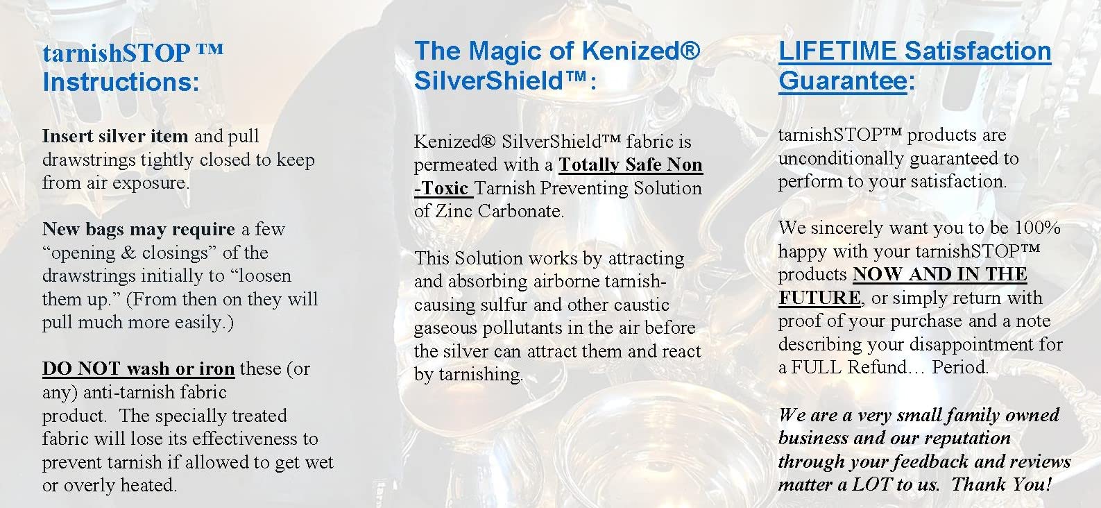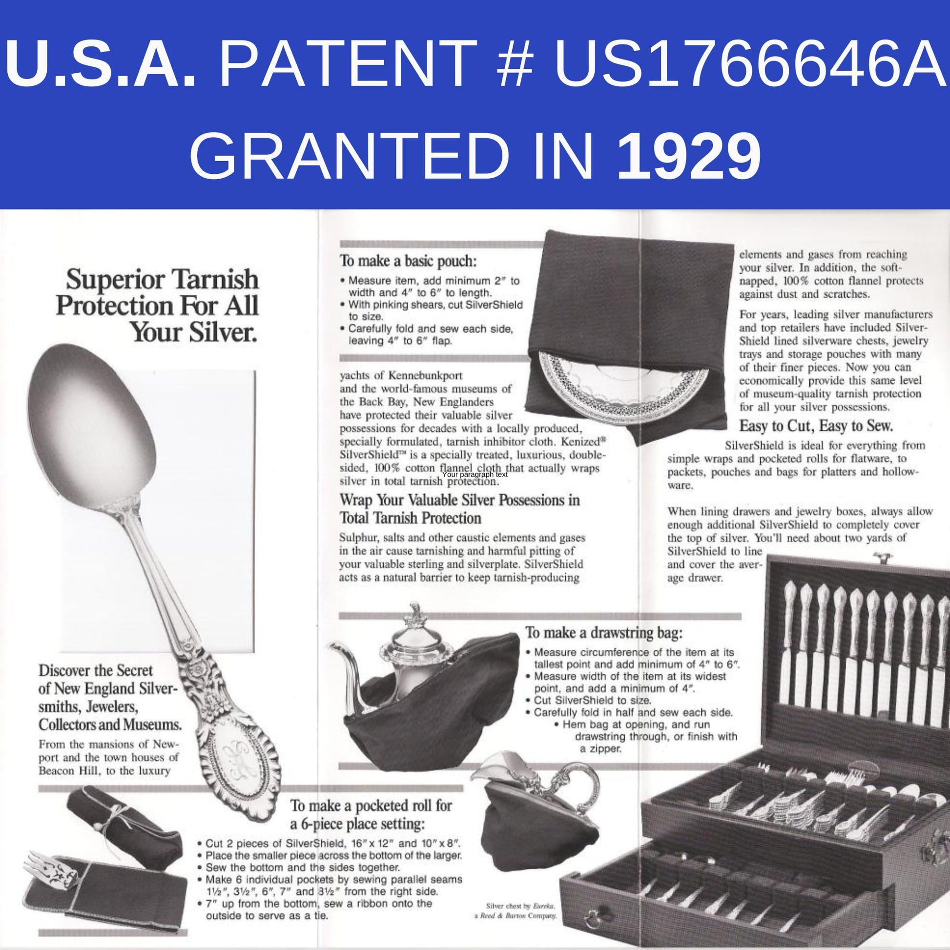 - ❤️Patented Kenized Silver-Shield Fabric ◆(U.S. Patent# US1766646A, Granted in 1929), of 100% Cotton Flannel, is Saturated With a Safe and Non-Toxic Tarnish Preventing Solution of Zinc Carbonate (the Mineral Commonly Used in Toothpastes).