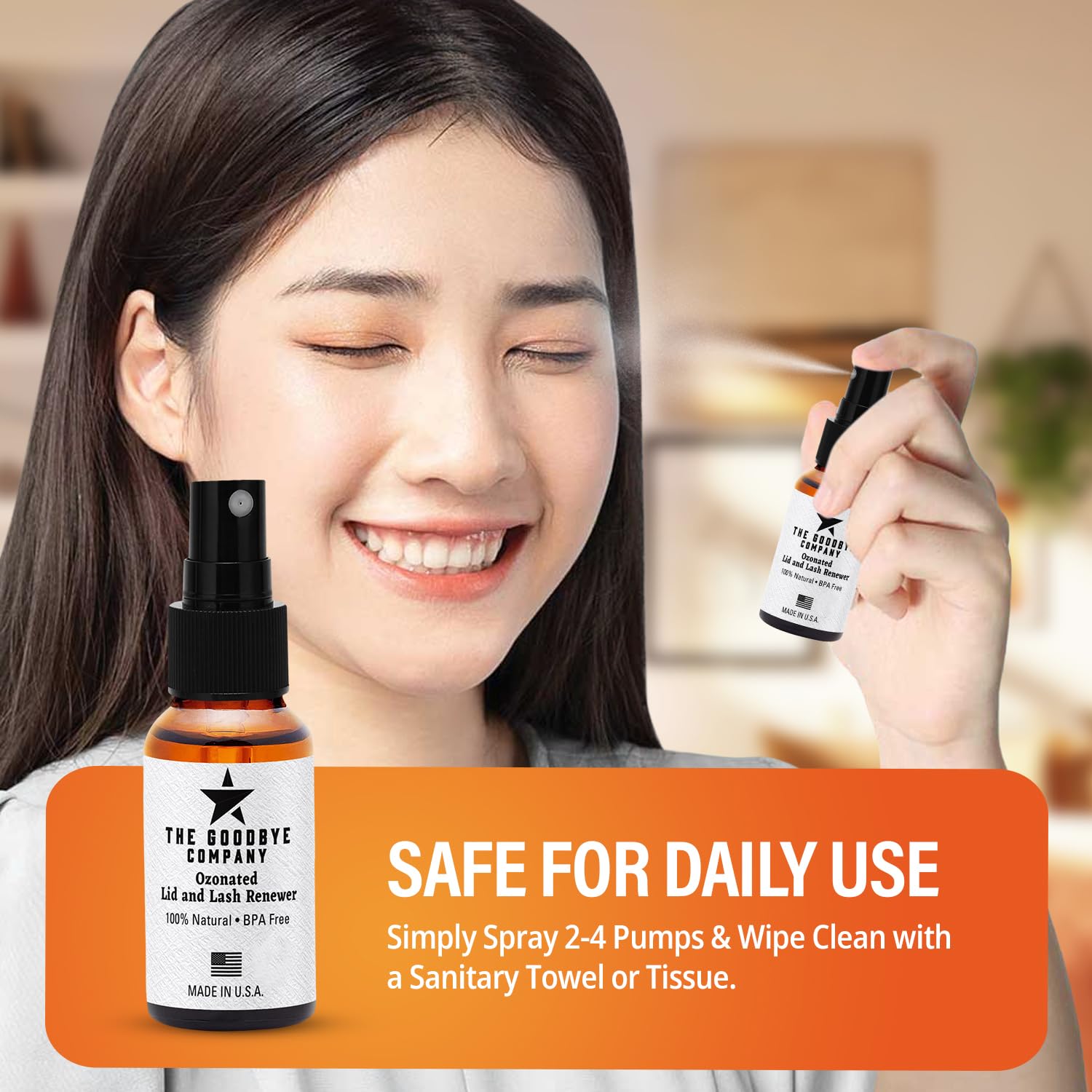 The Goodbye Company Ozonated Lid and Lash Renewer; Hypochlorous Acid Spray Eyelid & Eyelash Extension Cleanser; 100% Natural Lash Cleaning Kit; Made in USA (30 mL)