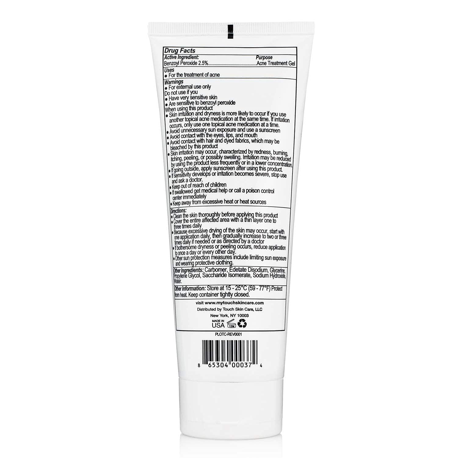 Touch Benzoyl Peroxide 2.5% Gel Cream For Acne - Pimples and Cystic Acne Spot & Daily Face and Back Medication for Adults & Teens – Goes on Clear Lightweight & Non-Drying - Large 8 oz.