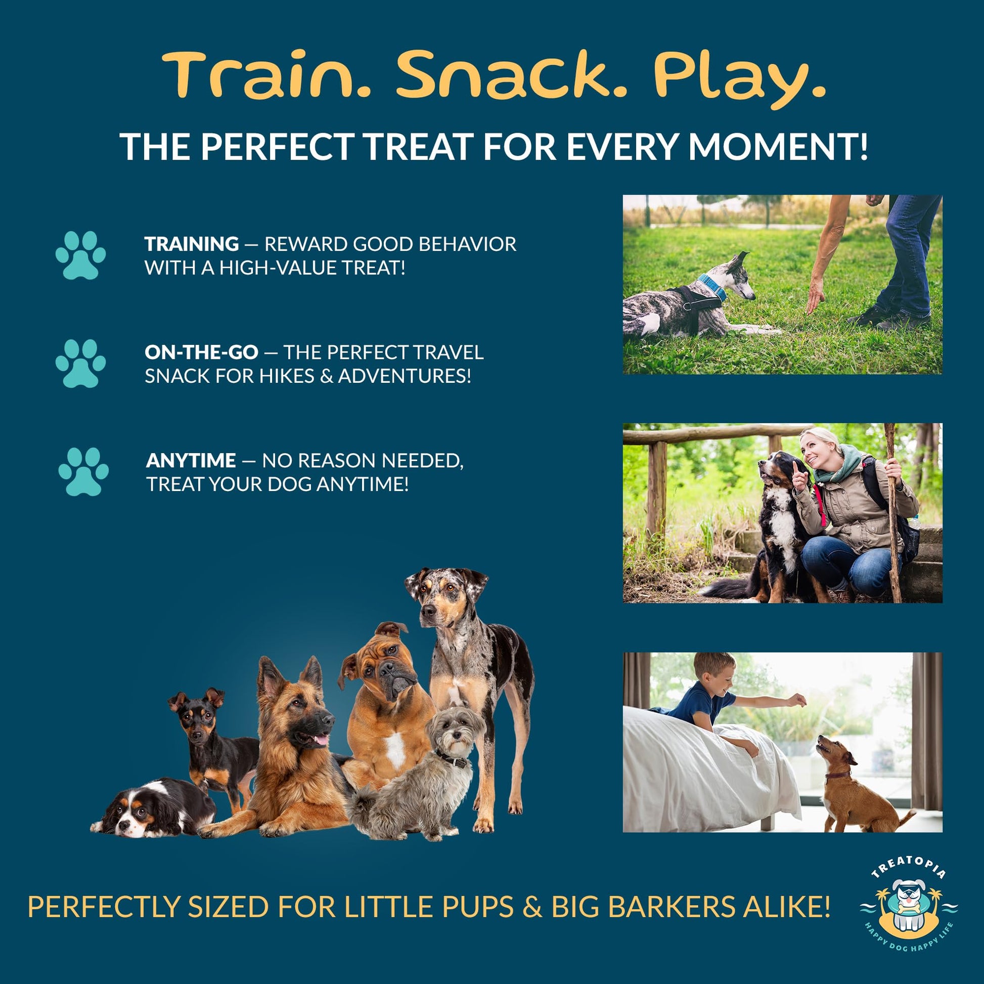 - Treatopia offers a rewarding, guilt-free snack to show your dog you care.