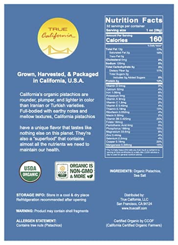 True California Organic Dry Roasted & Lightly Sea Salted Pistachios (2 LB) In-Shell - Healthy Snacks, Vegan & Gluten Free - Natural Whole Foods & Pantry Staples