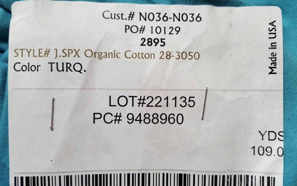 Details: Item Description: Organic Cotton Spandex Jersey Dimensions: 1YARD x 60”...If you purchase multiple yards your fabric will be shipped as one continuous piece. Material Content: 95% Organic Cotton 5% Spandex 4 Way Stretch MADE IN THE USA Weight: 7-7.5 oz. Color: Turquoise ACTUAL COLOR MAY VARY FROM SCREEN Uses: Cotton Jersey Knit fabric is great for apparel especially for making t-shirts, baby clothes, and even baby wraps! Cotton Jersey Knit fabric is soft and breathable. Koshtex Inc. does not provide the CPSC 1610 flammability testing certificate. By law our vendors have to provide us with the correct information or else they are liable. Organic Cotton is grown using methods and materials that have a low impact on the environment. Organic production systems replenish and maintain soil fertility, reduce the use of toxic and persistent pesticides and fertilizers, and build biologically diverse agriculture. Organic cotton is grown without the use of toxic and persistent pesticides and synthetic fertilizers. Apparel companies are developing programs that either use 100 percent organically grown cotton, or blend small percentages of organic cotton with conventional cotton in their products. As a result of consumer interest, organic cotton fiber is used in everything from personal care items (sanitary products, make-up removal pads, cotton puffs and ear swabs), to home furnishings (towels, bathrobes, sheets, blankets, bedding), children's products (toys, diapers), clothes of all kinds and styles (whether for lounging, sports or the workplace), and even stationery and note cards.