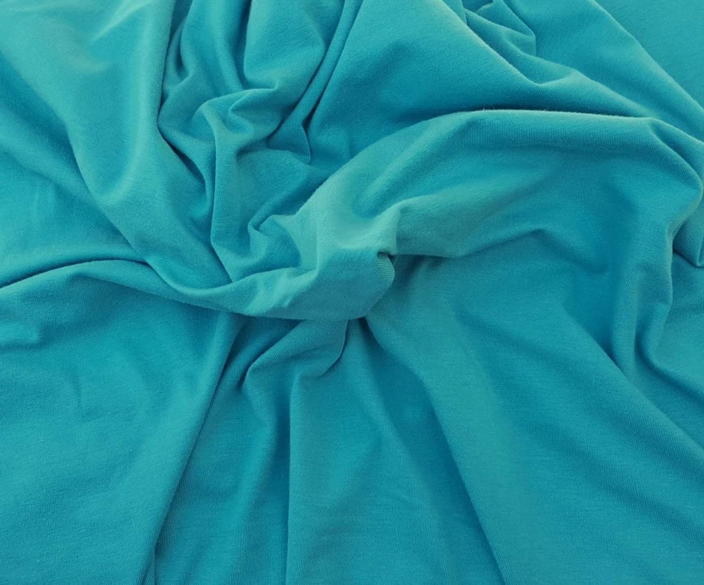 Turquoise Organic Cotton Spandex Fabric Eco Friendly Jersey Knit by Yard 4/16 Made in The USA