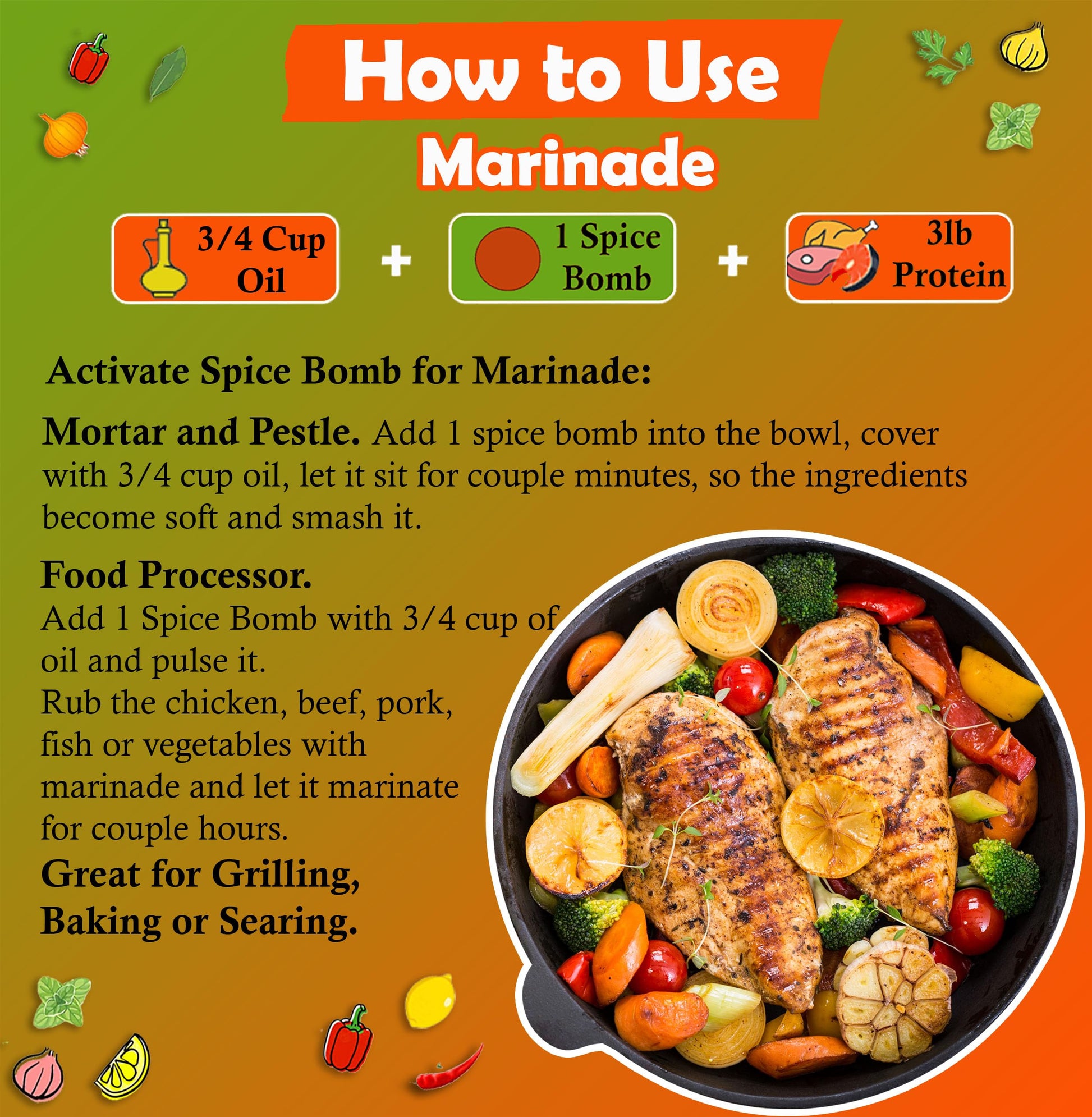 - Chef Made. These flavorful Spice Bombs were created by a Professional Chef to bring easy recipes to your kitchen. Our seasoning mix combines the perfect balance of flavors, adding unforgettable flavor to any dish you desire. Spice Bombs are perfect for everyday meals and any occasions, as well as different cuisines, such as Mexican cuisine, Italian cuisine, Greek, American, just be creative.